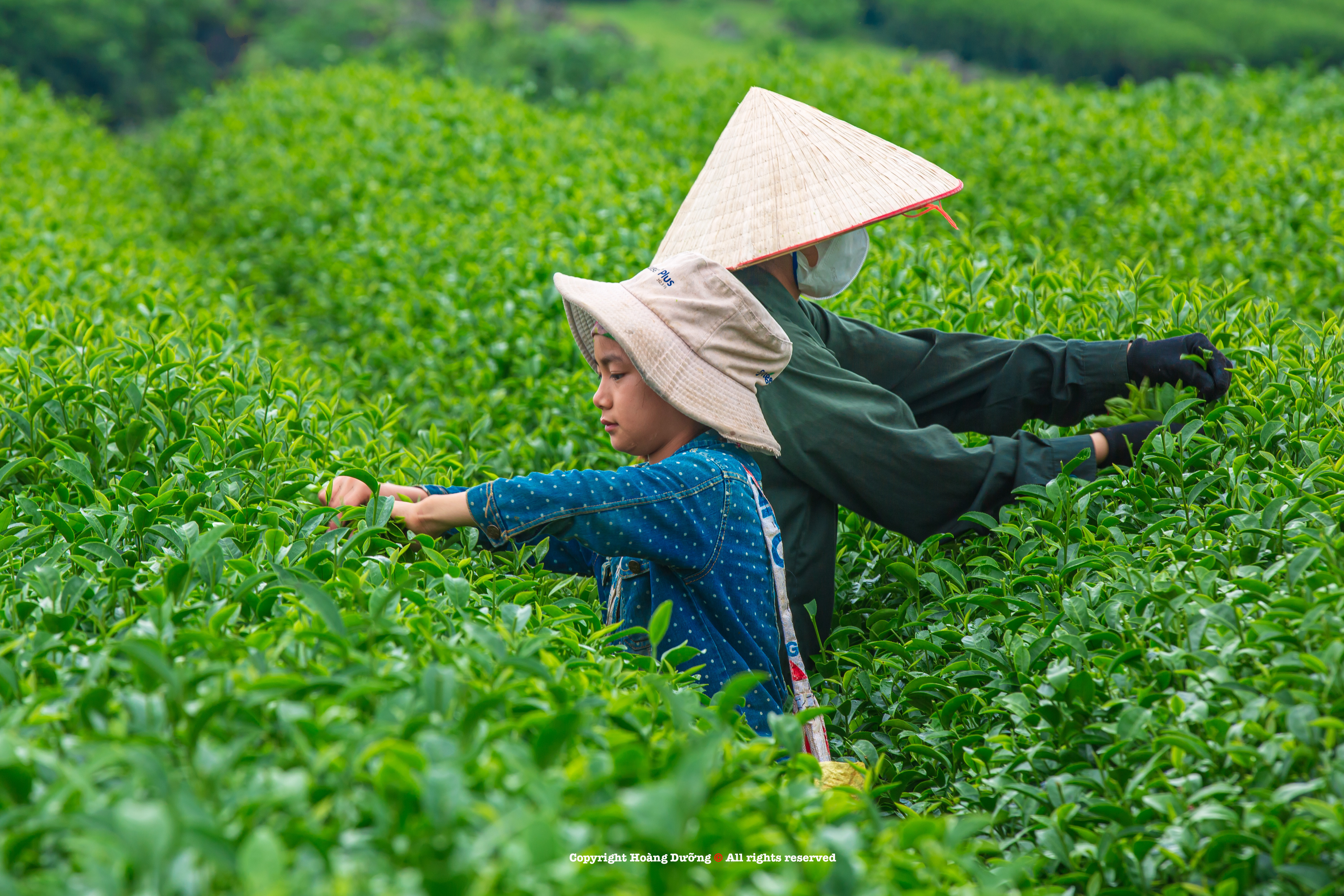 Anh Dưỡng dành 3 ngày rong ruổi theo chân những người công nhân hái chè để "săn" được nhiều khoảnh khắc ấn tượng khác nhau. Phần lớn trong đó là các góc máy trên cao để thấy đồi chè “khổng lồ”, rộng lớn, con người ẩn hiện, điểm xuyết.