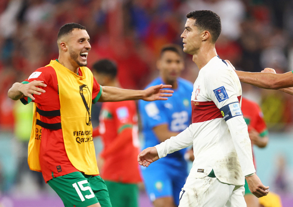 Bất lực trong việc xé lưới đối phương, Ronaldo tỏ ra buồn bã và thất vọng, mắt ngấn lệ rời sân Al Thumama.