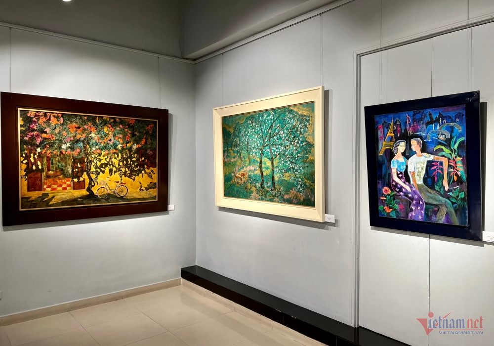Không gian 3 bộ tranh của các họa sĩ được trưng bày trong triển lãm.