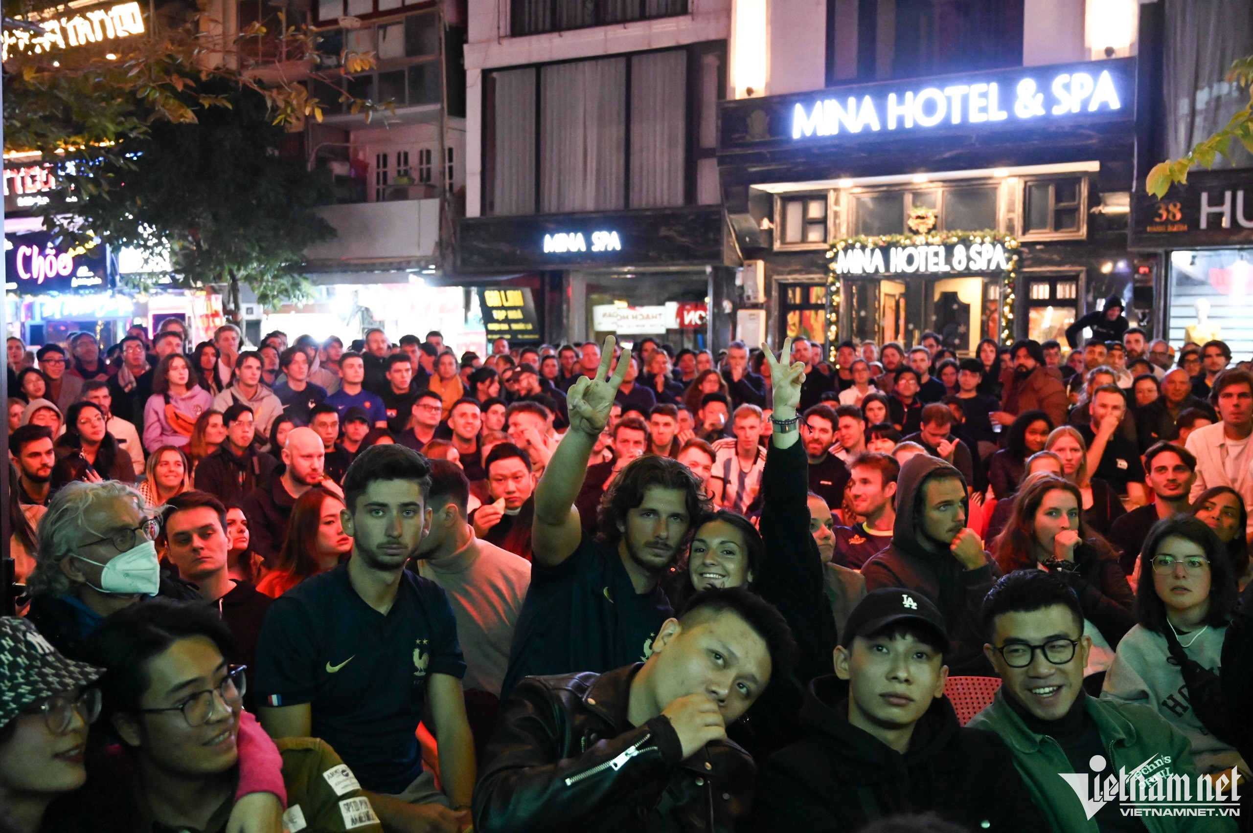 22h tối 18/12, các cổ động viên của hai đội Pháp và Argentina đổ về phố Tạ Hiện (quận Hoàn Kiếm) để cổ vũ qua màn hình tại trận đấu cuối cùng của VCK World Cup 2022. Hai đội từng 3 lần đụng độ tại sân chơi World Cup. Argentina thắng 2 trận nhưng cuộc chạm trán gần nhất đã cách đây 4 năm.