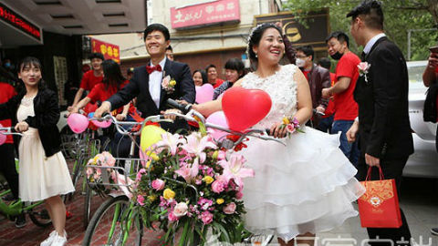 Thay vì đón dâu bằng xe hơi với chi phí có giá đến hàng triệu đồng thì cặp đôi Trung Quốc này chỉ tốn 160.000 đồng để thuê 50 chiếc xe đạp đi đón dâu trong ngày lễ trọng đại của họ.