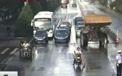 Cảnh sát và những người qua đường đã chạy thục mạng khi một chiếc máy xúc phóng điên cuồng trên những phố của thành phố Sóc Châu, tỉnh Sơn Tây (Trung Quốc).