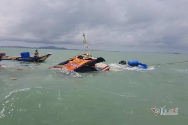 Sà lan 800 tấn neo đậu trên sông ở huyện Cần Giờ (TP.HCM) để nhận hàng từ tàu nước ngoài thì xảy ra tai nạn khiến một người mất tích.