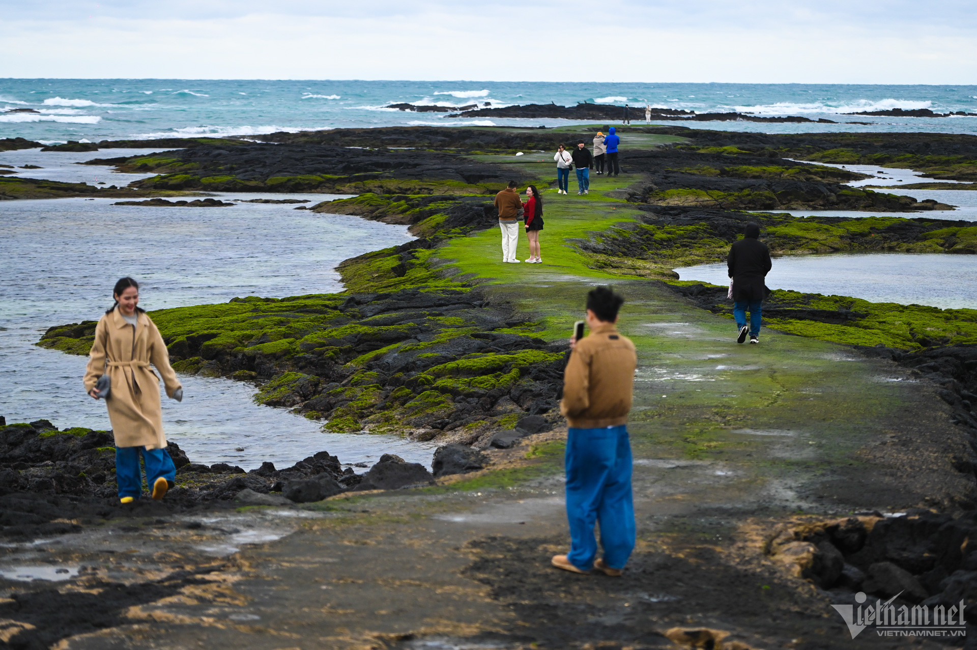 Những trận mưa rào khiến hòn đảo giữa biển âm u, thậm chí sương mờ giăng kín trên núi cao. Số ít du khách dịp này tranh thủ đến các điểm check-in để khám phá. Những điểm đến như Secret Forest, bờ biển Iho Taewoo, Noksan-ro & Jeju horse park... thường xuyên có những lượng khách lớn.