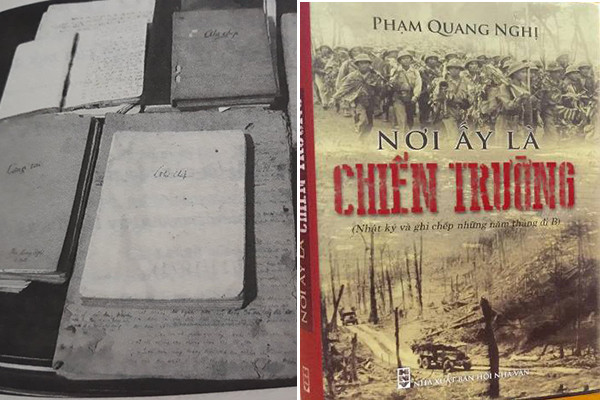 | Các cuốn nhật ký ở chiến trường của ông Phạm Quang Nghị được xuất bản thành sách tựa đề "Nơi ấy là chiến trường" |