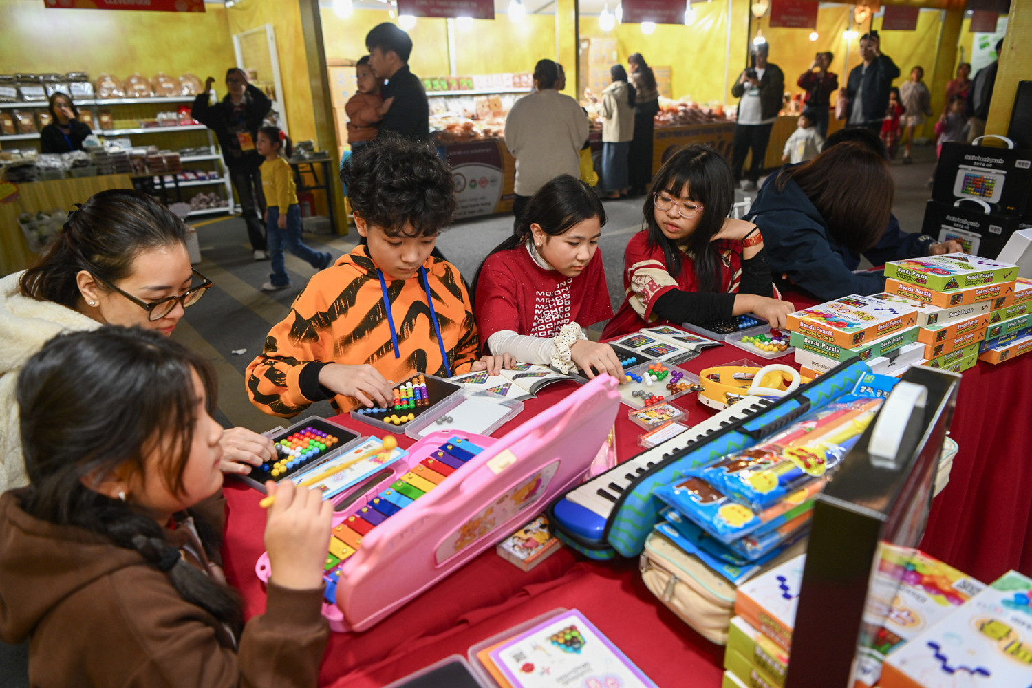 Cùng lúc, Quảng trường Kinh đô Ánh sáng cũng đông vui như Tết khi ngay từ ngày 19/12/2024, Hội chợ phiên Ocean Fair Market đã được khởi động bằng 30 gian hàng của chính cư dân đại đô thị, các tiểu thương, doanh nghiệp lân cận.