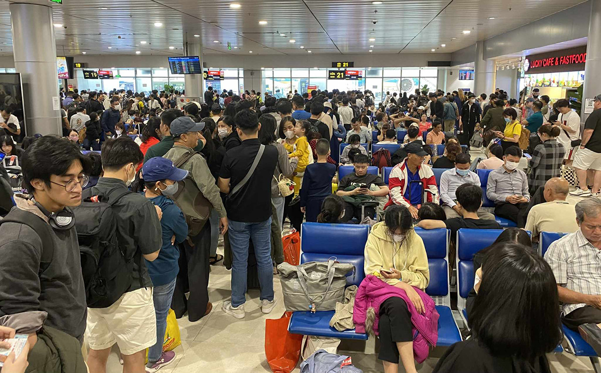 Dòng người xếp hàng dài đợi đến lượt mình làm thủ tục, nhân viên của các hãng phải ứng trực hướng dẫn hành khách xếp hàng, ký gửi hành lý. Cảnh đông đúc cũng xảy ra tại khu vực cửa an ninh, khu vực chờ ra tàu bay. Hành khách cũng ngồi chờ kín các dãy ghế và khu sảnh.