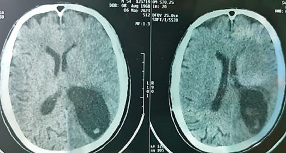 Sau khi xuất hiện các triệu chứng nhức đầu nhẹ, méo miệng về bên phải, tay và chân phải yếu dần, không cử động được, kèm theo các cơn động kinh xuất hiện dày hơn, không kiểm soát được bằng thuốc, người nhà đã đưa ông T. đến khám, điều trị tại Bệnh viện đa khoa Tây Bắc Nghệ An nhưng bệnh ngày càng nặng. Sau đó, ông tiếp tục được chuyển Bệnh viện Hữu nghị Đa khoa Nghệ An cấp cứu.