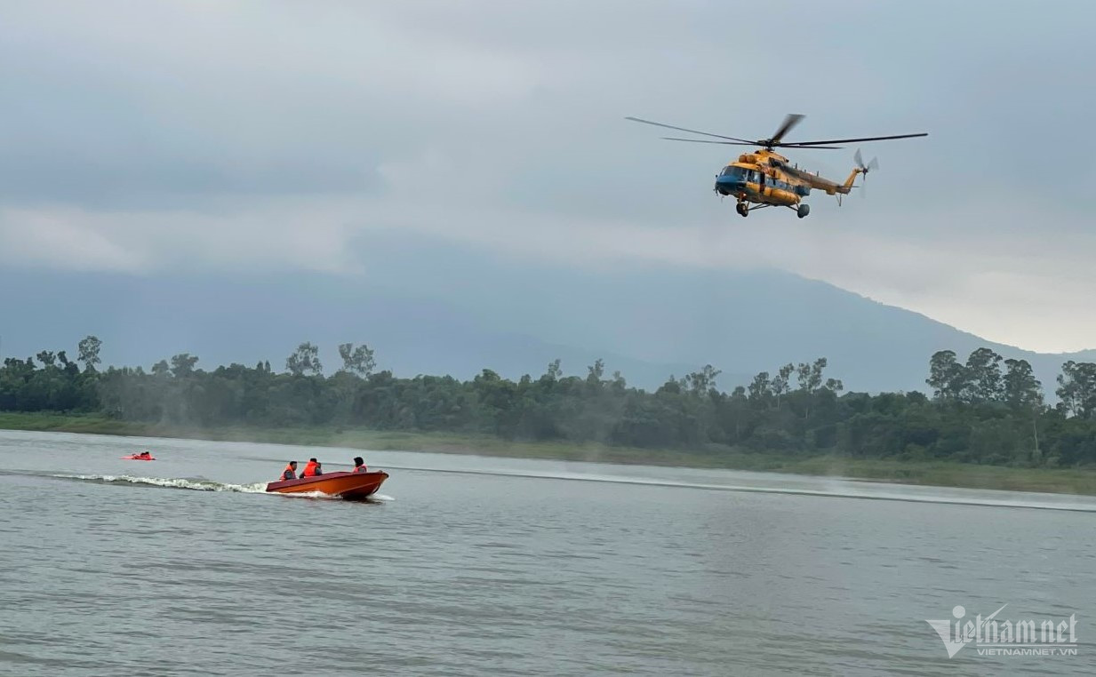 Sau chuyến bay trinh sát khí tượng, đúng 6 giờ 45 phút ban bay huấn luyện được chính thức triển khai. Trên không, chiếc máy bay cứu hộ chuyên dụng Mi-171 mang màu cam nổi bật cho biểu tượng cứu hộ do Thiếu tá Nguyễn Văn Truẩn- Chủ nhiệm bay Trung đoàn 916 khéo léo điều khiển hạ thấp độ cao, từ từ tiến vào khu vực, cách đó không xa chiếc Mi-17 cũng đang lượn vòng sẵn sàng ở tuyến chờ.