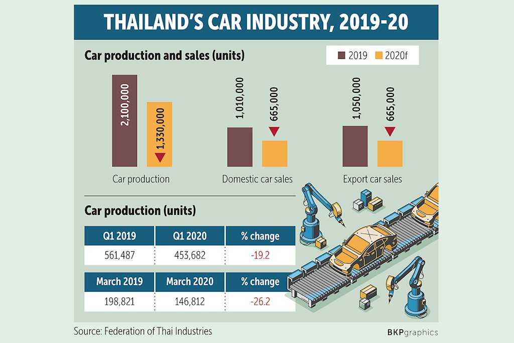 Tháng 3, lượng xe xuất xưởng đạt 146.812 xe, giảm 26,2% so với cùng kỳ năm 2019. Tính cả quý I/2020, sản lượng xe hơi của Thái Lan đạt 453.682 chiếc, giảm 19,2% so với cùng kỳ năm ngoái.