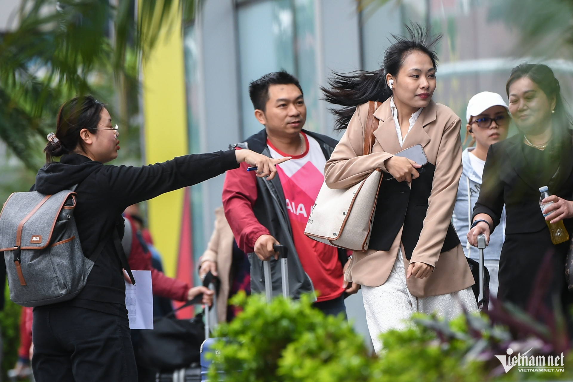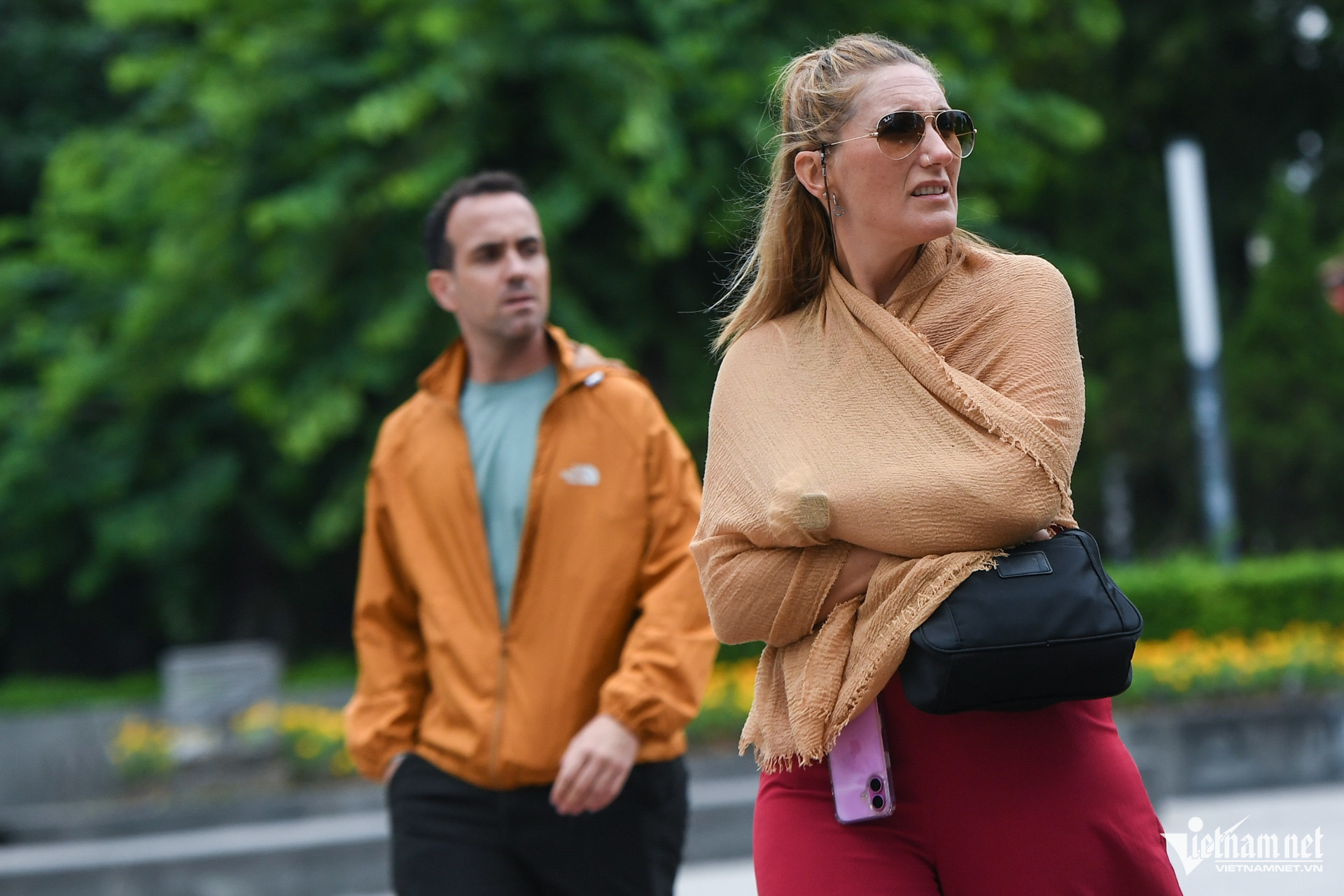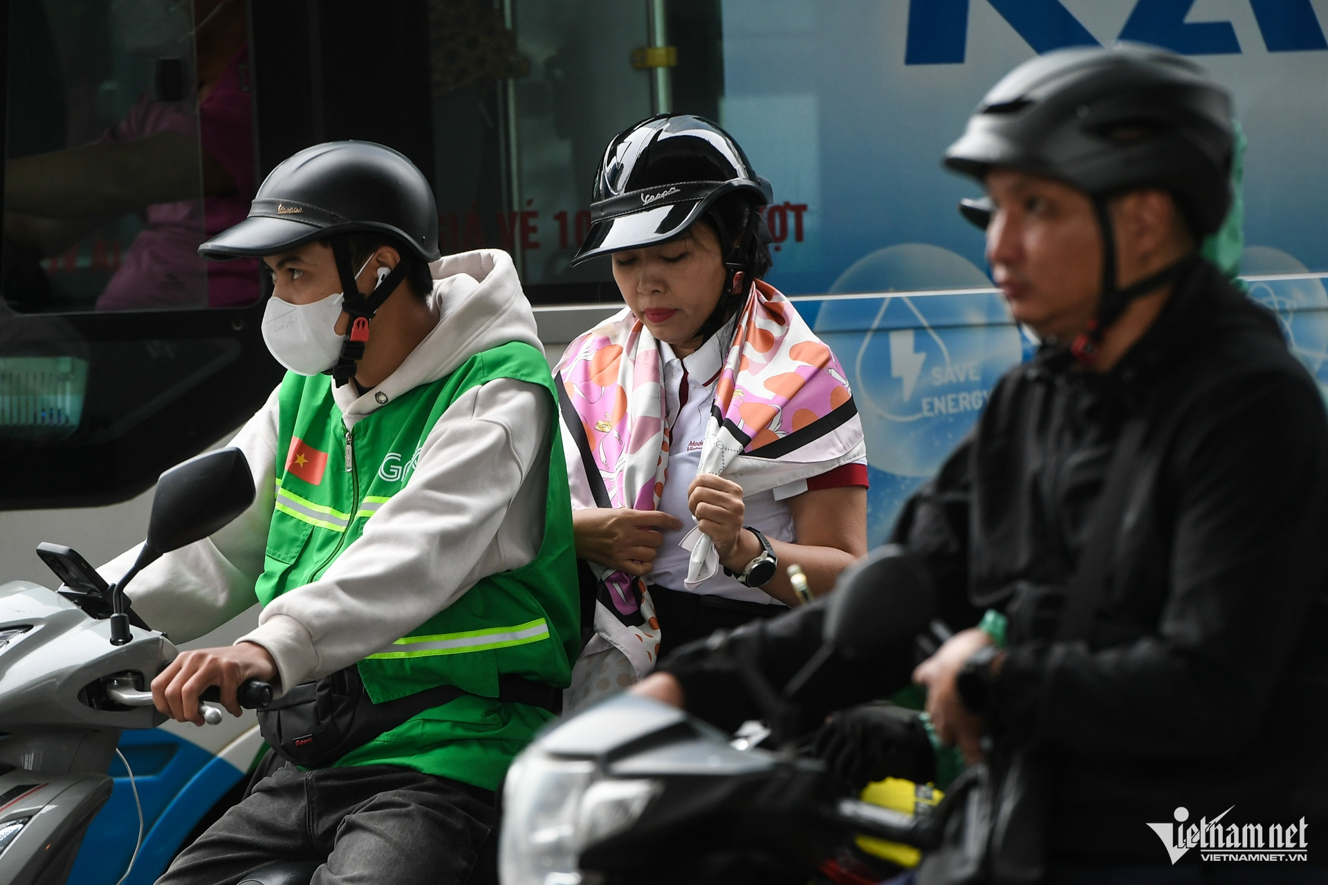 Tại phố Trích Sài (phường Tây Hồ) trời có gió lớn, đôi lúc mưa nhỏ. Một thanh niên dừng lại mặc thêm áo mưa để tránh gió. Anh chỉ kịp thốt lên: "Rét quá!", rồi nhanh chóng phóng xe đi.