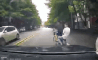 Bất chấp nguy hiểm, xe đạp sang đường kiểu tự sát