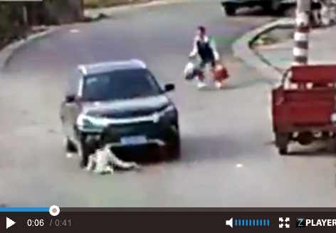 Người mẹ hai tay xách đồ không kịp phản ứng khi bé gái chạy sang đường trong lúc chiếc ô tô đang lao qua, khiến bé bị hất tung lên, chèn qua người.