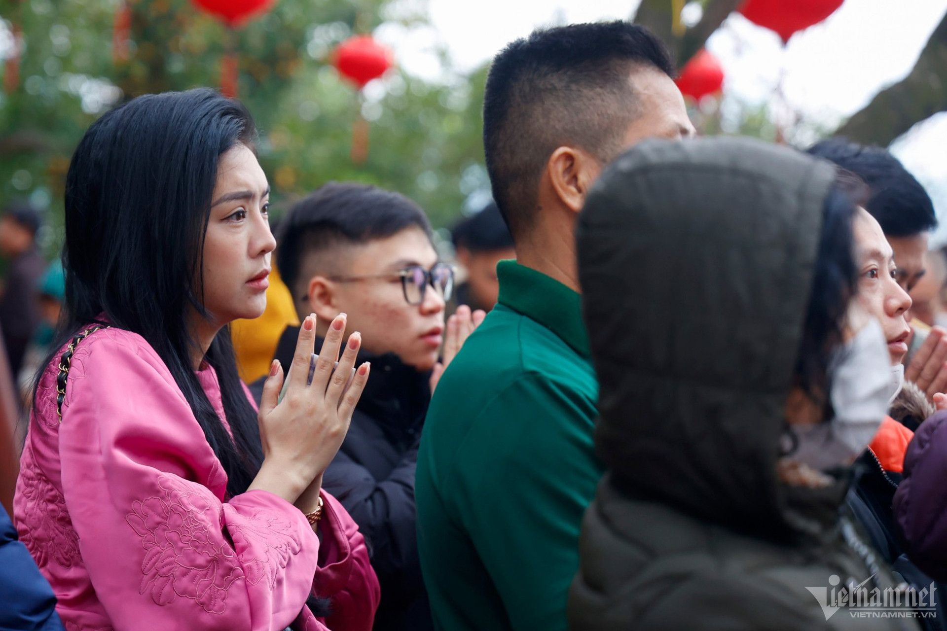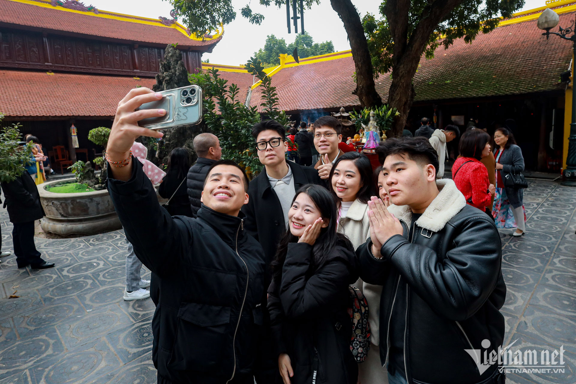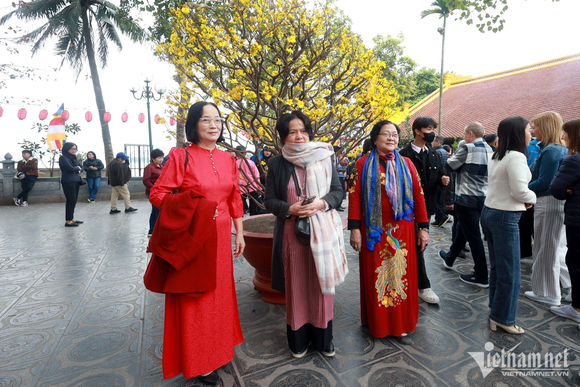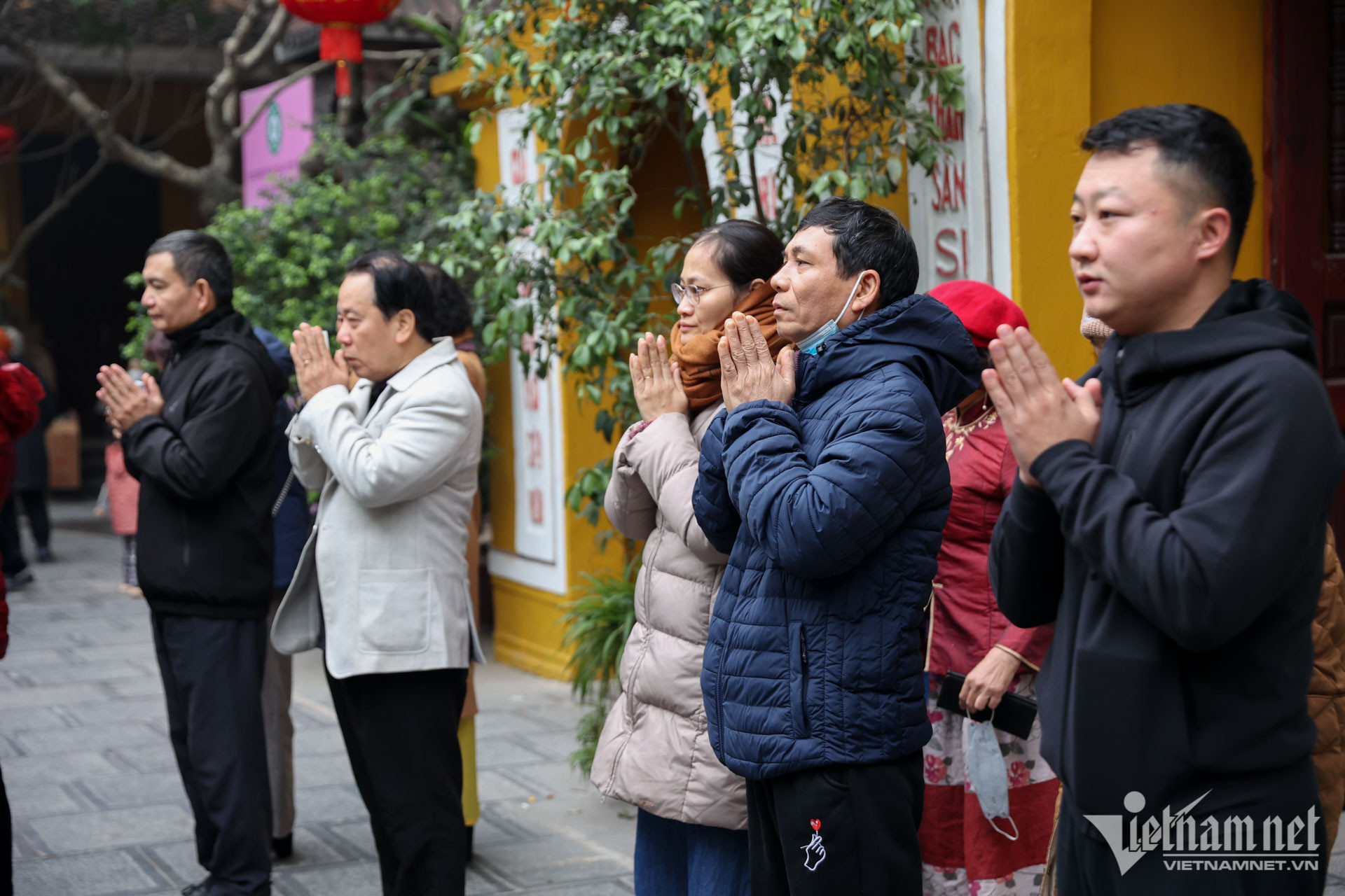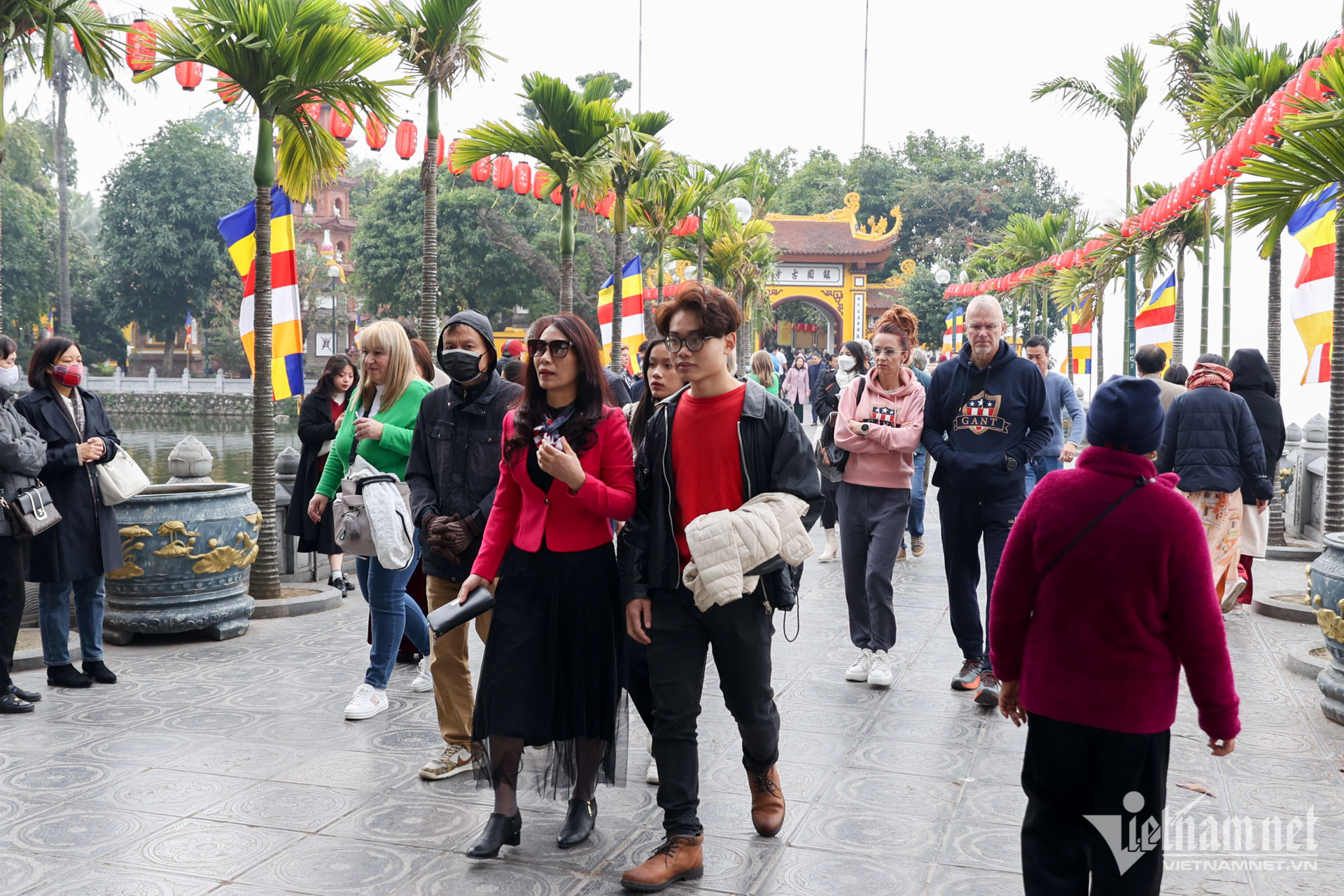 Hôm nay phố phường vắng vẻ, đến chùa là để cảm nhận bầu không khí thanh tịnh, trang nghiêm. Thời tiết Hà Nội cũng rất đẹp, không quá lạnh, càng làm cho ngày mùng 1 Tết thêm ý nghĩa".