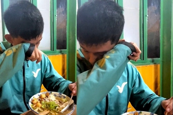 Tài xế xe ôm vừa ăn vừa khóc trong ngày sinh nhật, phía sau là chuyện nhói lòng
