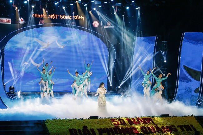 Thu Hằng chia sẻ Chung một dòng sông là chung tình nghĩa đồng bào, chung ngôn ngữ, văn hóa bởi vậy là một người Việt, được biểu diễn trong chương trình này là đối với cô là một điều rất vinh dự.