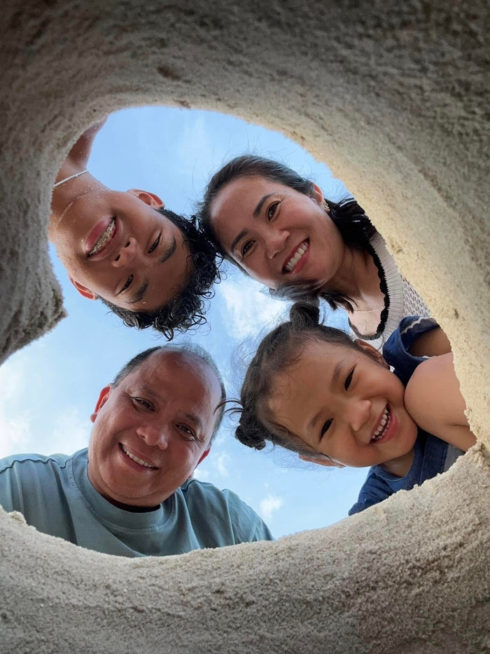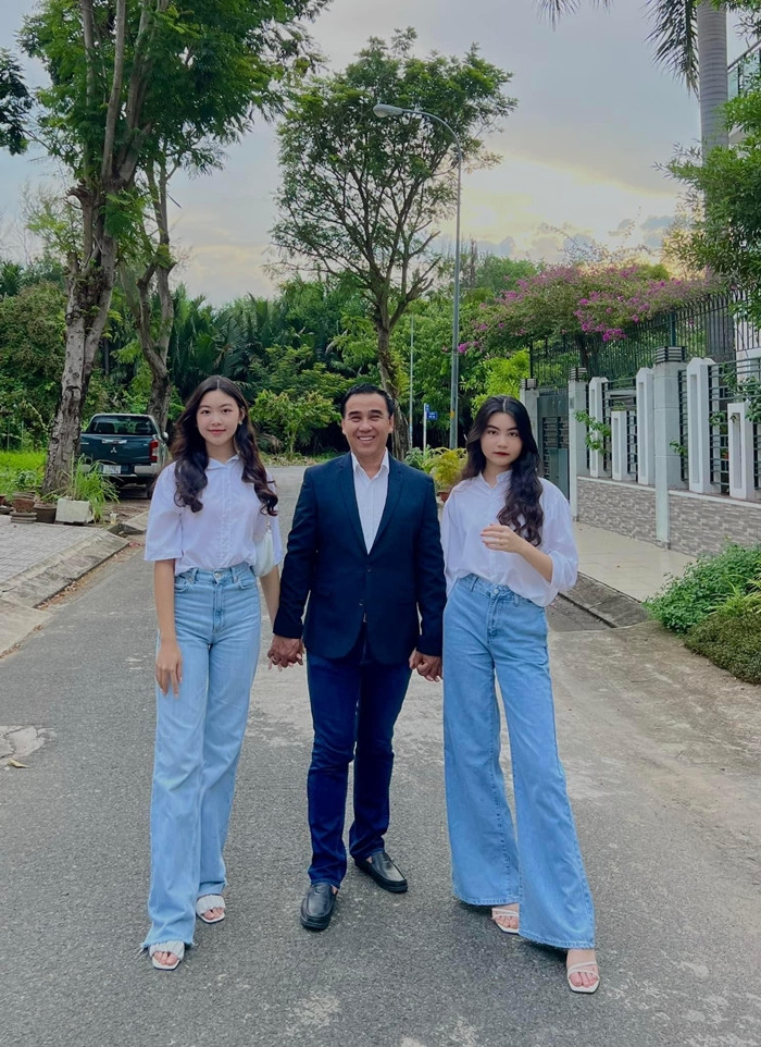 Vợ doanh nhân của nghệ sĩ Quyền Linh đăng hình hai con gái cao lớn xinh đẹp tình cảm nắm tay cha.