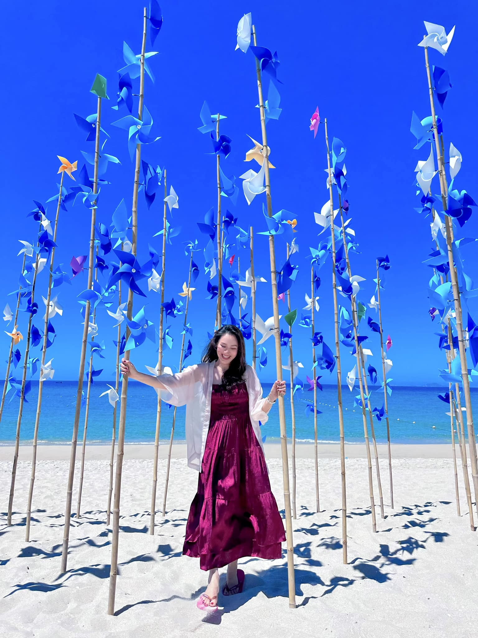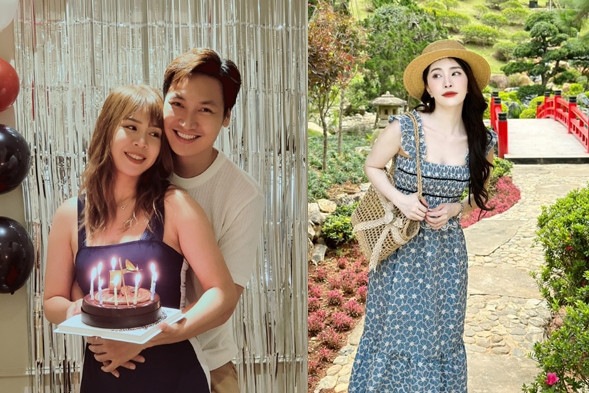 Trong khi Đàm Vĩnh Hưng đưa con trai đi Mỹ lưu diễn thì diễn viên Hồng Diễm có những ngày nghỉ ngơi thư giãn ở biển.
