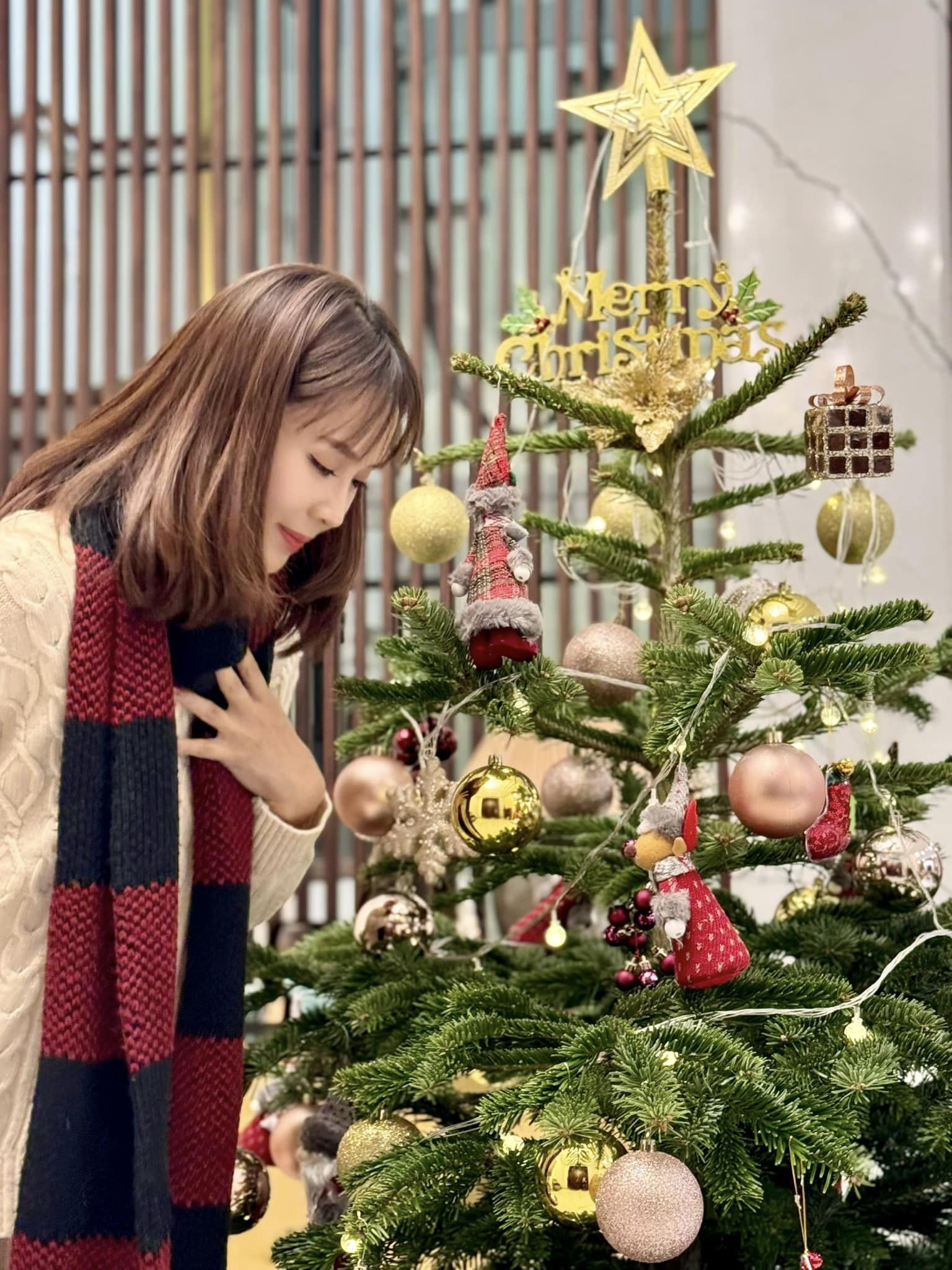 "Cuối năm nay bận rộn quá, may là vẫn kịp có vài kiểu ảnh bên cây thông tươi thơm lừng trước thềm Noel. Chúc mọi nhà đón mùa Giáng Sinh an lành, ấm áp, đầy niềm vui bên những người thân yêu", diễn viên Hồng Diễm viết.