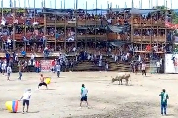 Sự cố kinh hoàng xảy ra hôm 26/6. Theo Reuters, các video được đăng trên mạng xã hội cho thấy phần khán đài 3 tầng lật úp về phía trước sàn đấu, nơi người dân địa phương đang tham dự một sự kiện đấu bò tót gắn liền với ngày lễ Thánh Peter và Thánh Paul.