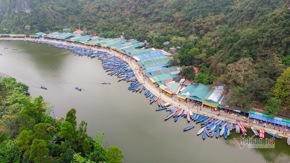 | Hàng nghìn thuyền neo đậu tại khu vực chùa Hương |