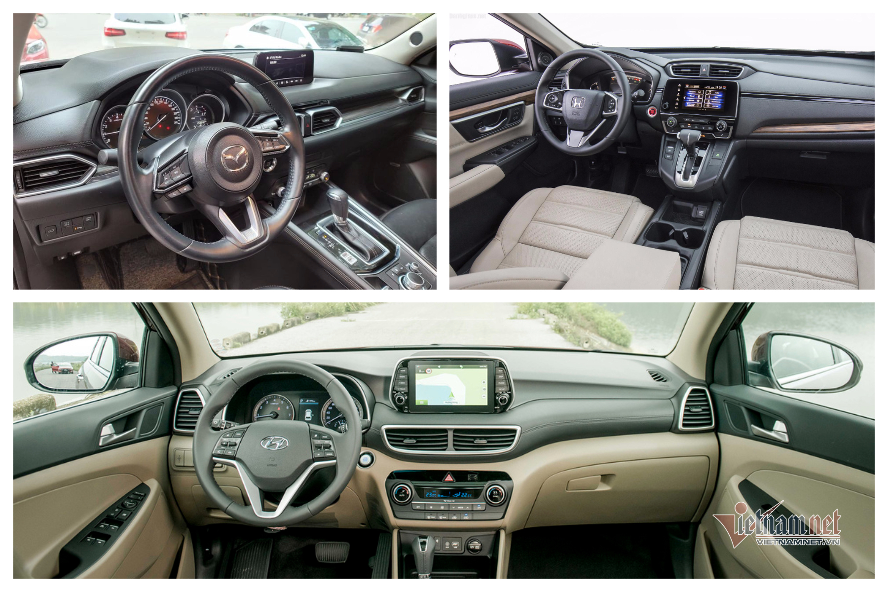 | Nội thất Mazda CX-5 2019, Honda CR-V 1.5G 2019 và Hyundai Tucson phiên bản 1.6L T-Gdi 2019 |