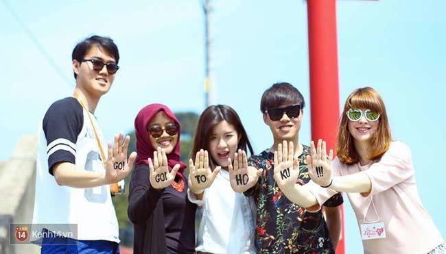 Ngày hôm sau, chuyến xe đưa chúng tôi đi xuyên dọc bờ biển Nhật Bản tại Yamagata. Khác với Việt Nam, thời điểm này tại Nhật Bản vẫn còn hơi lạnh để tắm biển, đa số người dân nơi đây đi lặn biển hoặc chơi thuyền buồm. Điểm dừng chân là hòn đảo Hakusanjima sừng sững trước mắt. Một chiếc cầu màu đỏ son đặc trưng kiểu Nhật kết nối với hòn đảo. Và khung cảnh thiên nhiên nơi đây đã chính thức chinh phục tất cả thành viên trải nghiệm.