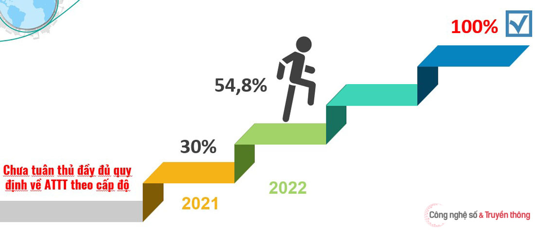 Theo thống kê, trong tổng số hơn 3.000 hệ thống thông tin, hiện mới chỉ có khoảng 54,8% hệ thống thông tin được các bộ, ngành, địa phương phê duyệt cấp độ, tăng 24,8 % so với tỷ lệ 30% tại thời điểm cuối năm 2021.