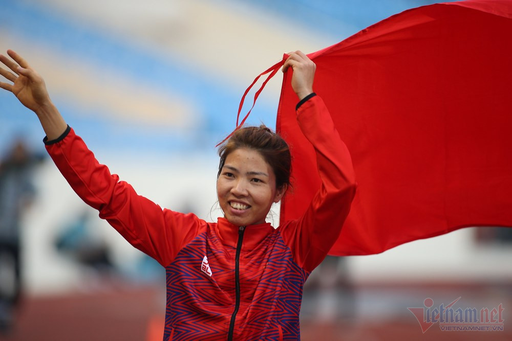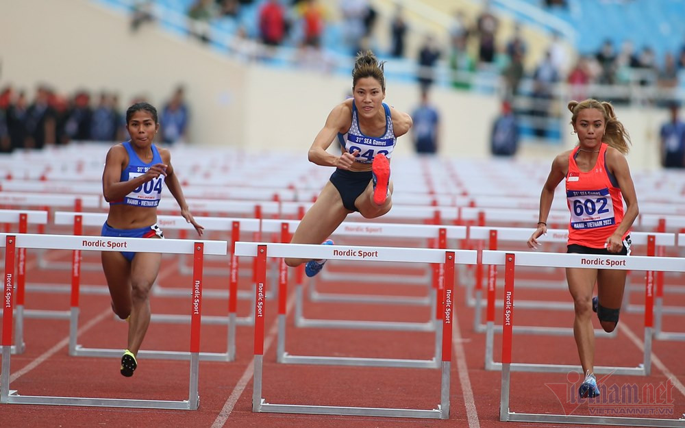 Bùi Thị Nguyên xuất sắc về nhất ở đường chạy 100m rào với thời gian 13 giây 53 để mang về tấm HCV cho điền kinh Việt Nam.