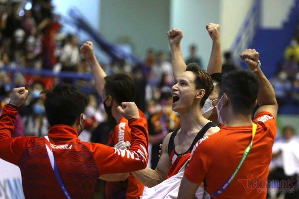 VĐV Phương Thành bằng điểm số 13.687 với Carlos Yulo ở nội dung xà đơn cho nên cả hai VĐV cùng giành HCV.