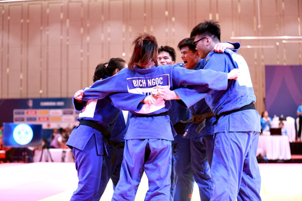 Đội tuyển Judo Việt Nam gồm Nguyễn Thị Bích Ngọc, Lê Huỳnh Tường Vi, Dương Thanh Thanh, Nguyễn Hải Bá, Lê Anh Tài và Nguyễn Châu Hoàng Lân giành chiến thắng nghẹt thở với tỉ số 4-3 trước các VĐV Thái Lan trong trận chung kết đồng đội hỗn hợp. Đây là tấm HCV thứ 128 của đoàn thể thao Việt Nam tại SEA Games 32.
