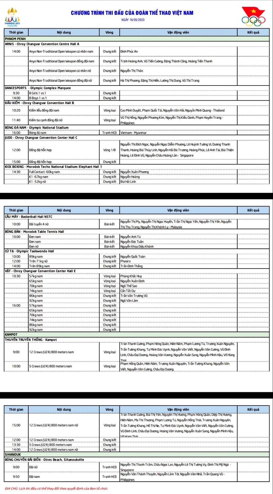 Lịch thi đấu SEA Games 32 của đoàn Việt Nam hôm nay 16/5