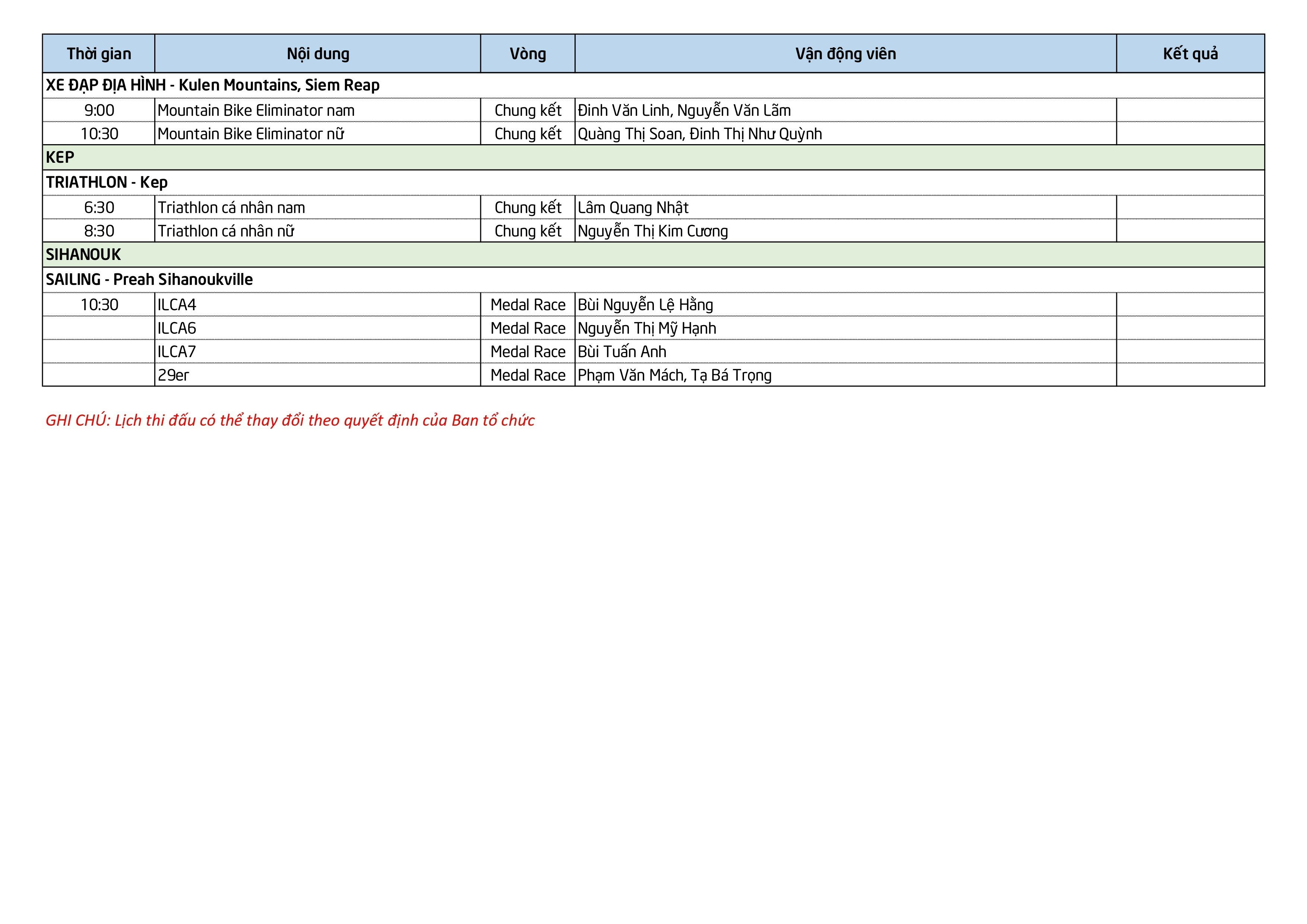 Các môn như bi sắt, xe đạp địa hình, triathlon... cũng có khả năng đóng góp HCV trong ngày thi đấu hôm nay.