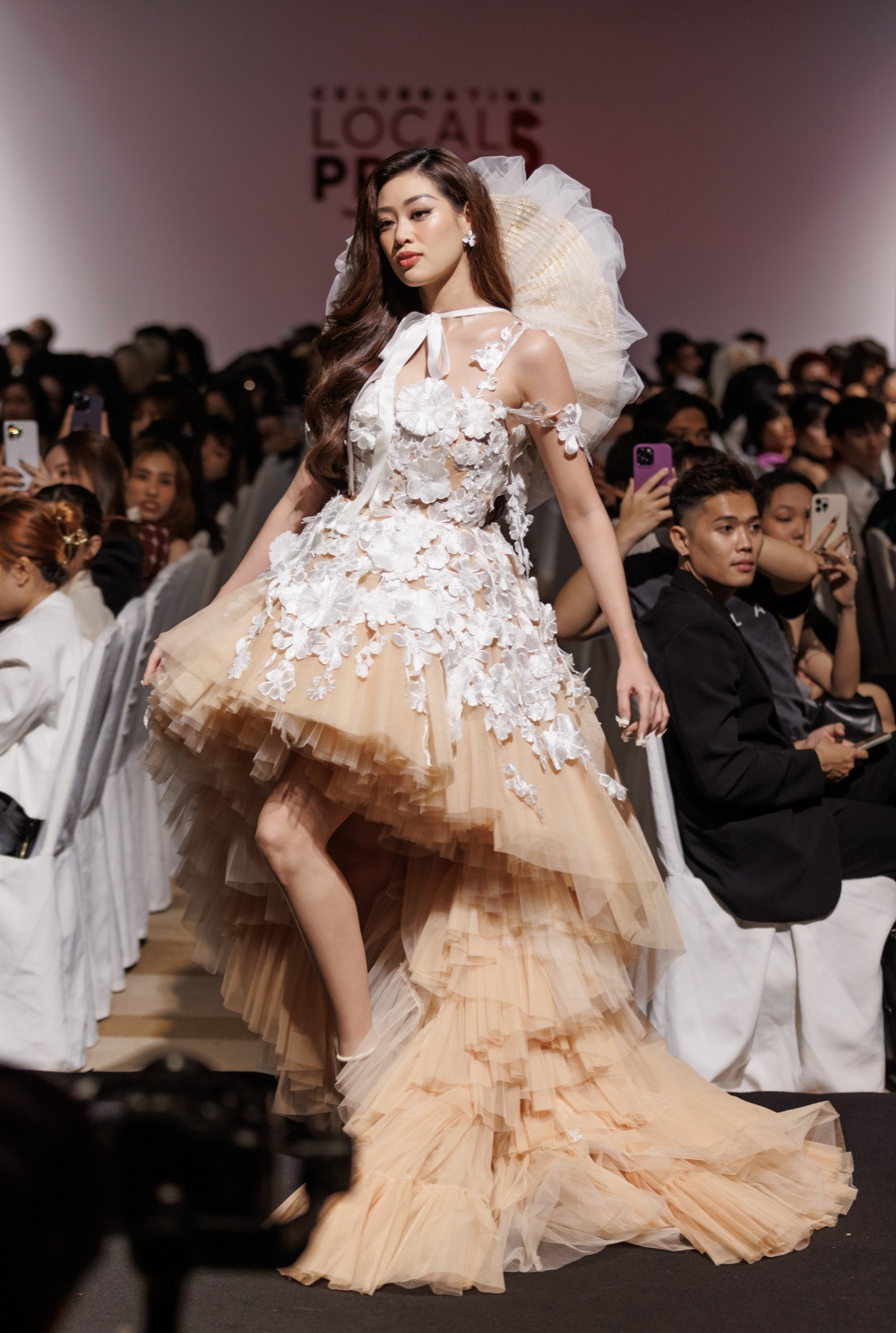 Từ trái qua: Hoa hậu Lương Thuỳ Linh, Khánh Vân, siêu mẫu Minh Tú tại show diễn Celebrating Local Pride Xuân Hè 2023.
