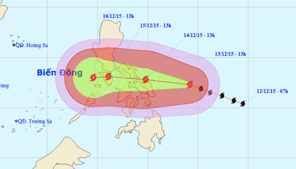 Một cơn bão rất mạnh đang hoạt động trên vùng biển phía Đông miền Trung Philippines với sức gió cấp 13, giật cấp 16-17.