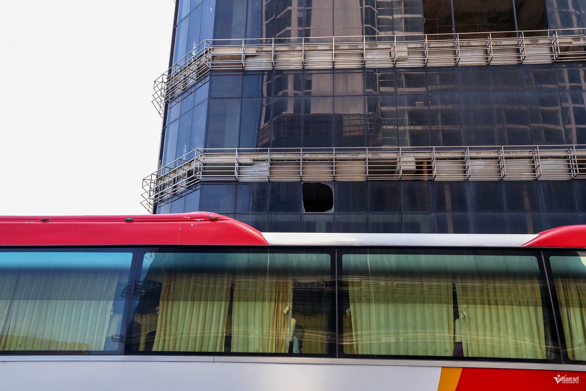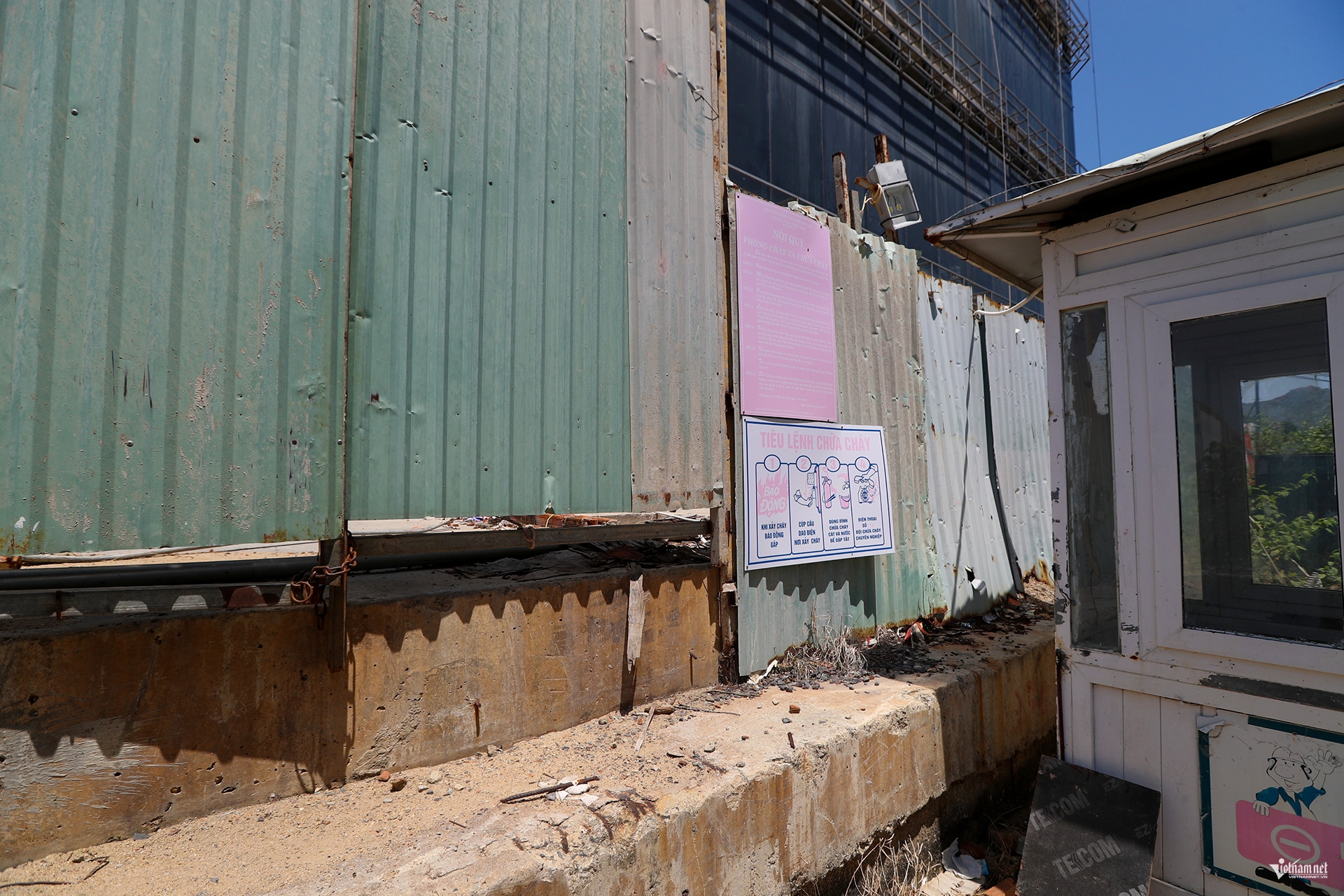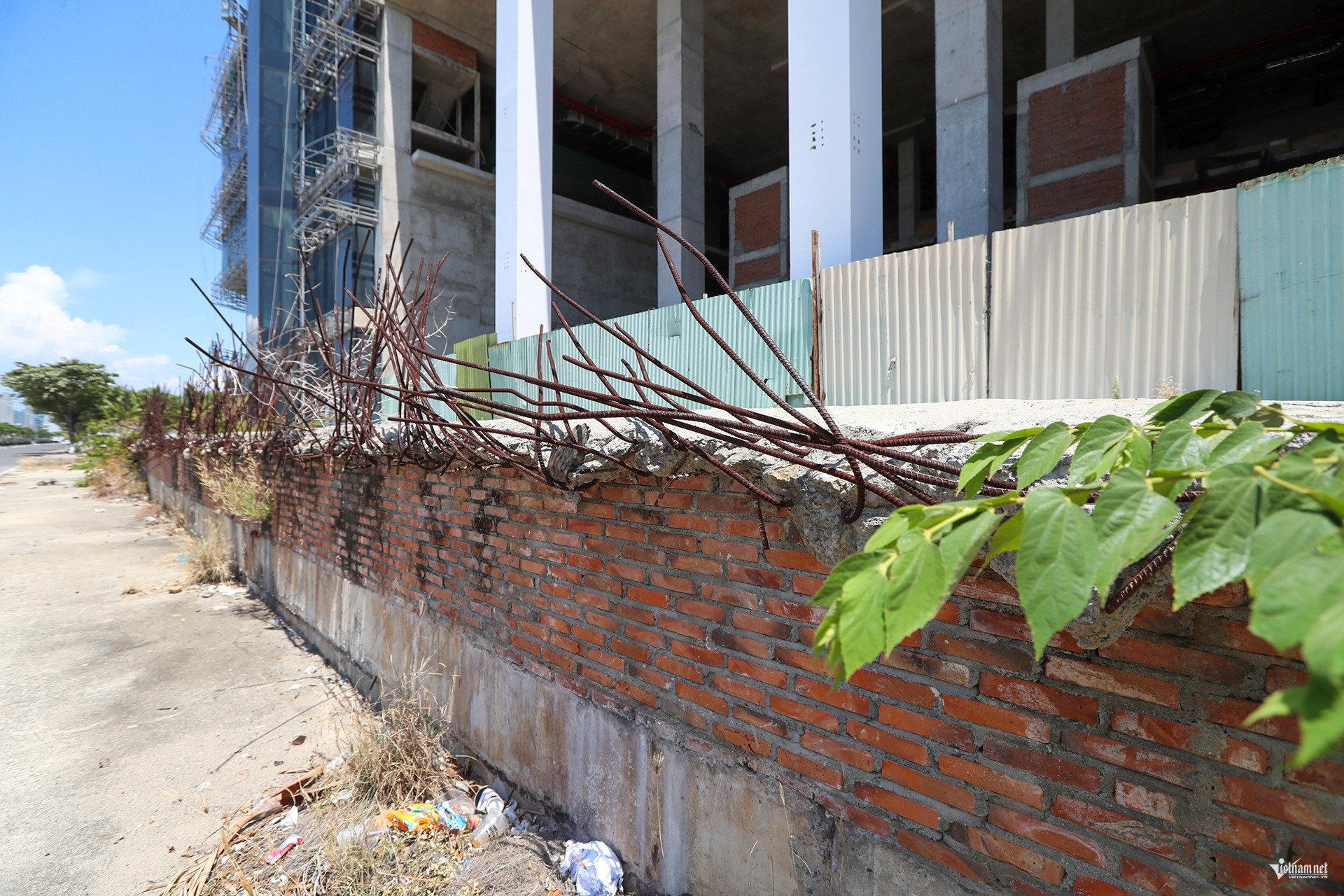 Hàng loạt trụ móng bê tông bên trong chưa hoàn thành, qua thời gian đã bị xuống cấp. Xung quanh dự án được quây kín bằng tôn, bên trong hoang phế, lạnh lẽo. Khối nhà có dấu hiệu dần xuống cấp, hư hỏng. Vật liệu xây dựng nằm ngổn ngang, sắt thép dần hoen rỉ.