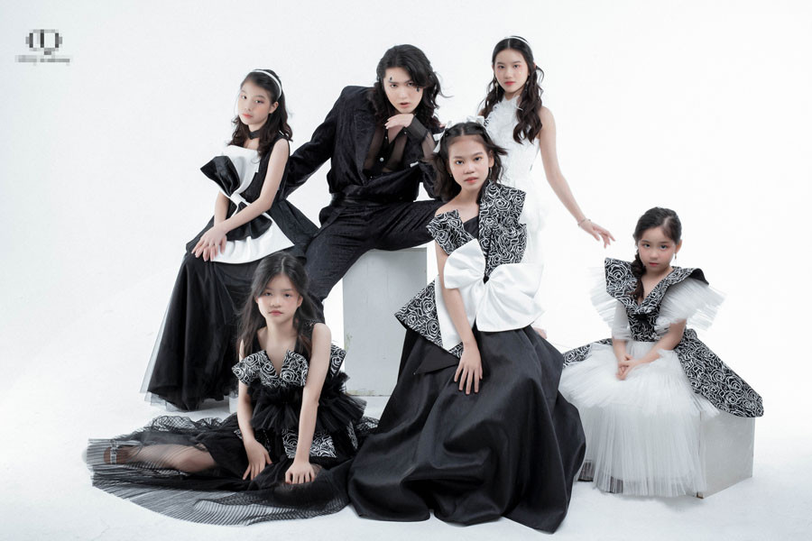 Trên trang cá nhân, siêu mẫu Đình Quyền chia sẻ công khai bộ ảnh đen trắng cực ngầu cùng các model kid nhân dịp Quốc tế thiếu nhi.