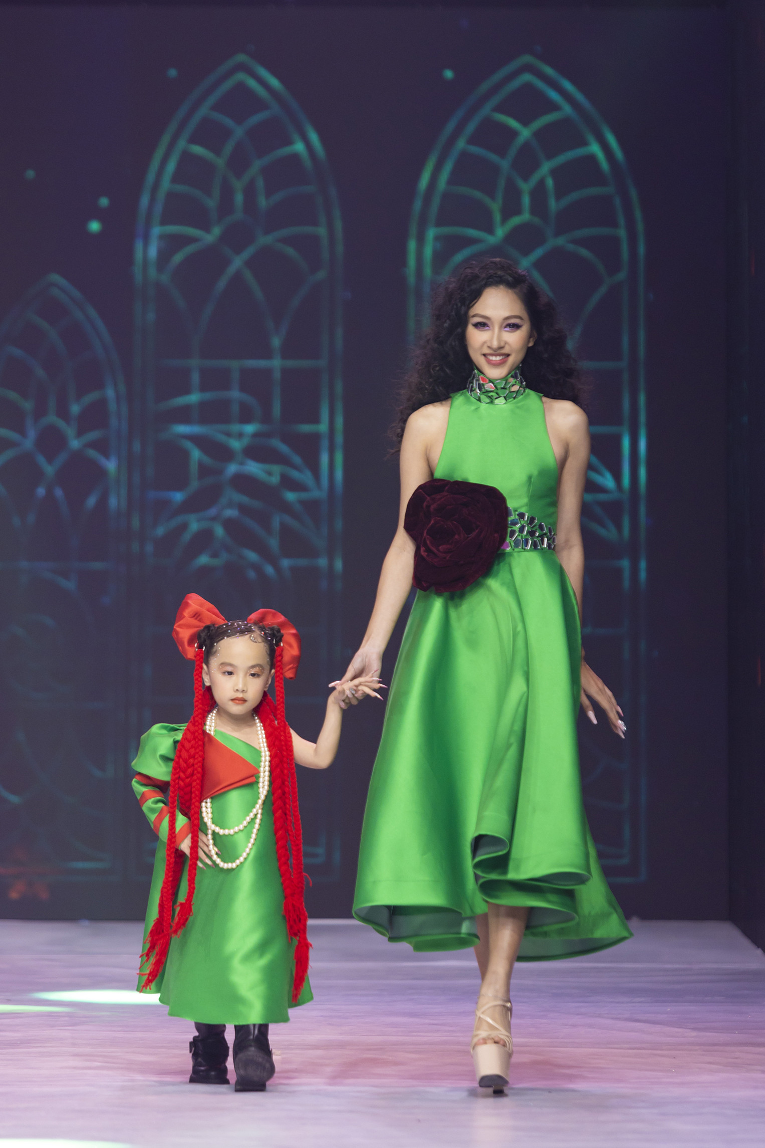 NTK Phương Hồ tổ chức chương trình thời trang nghệ thuật "Búp bê show 2" ngày 26/11 có sự tham gia của các gương mặt nổi tiếng của làng giải trí. Siêu mẫu quốc tế 2022 Bùi Quỳnh Hoa xinh xắn trong chiếc đầm hồng của bộ sưu tập Princess. Khi vô tình rơi giày khi đang catwalk, cô vẫn bình tĩnh và nhanh trí đi nhón chân để xử lý tình huống như chưa hề gặp sự cố.Mẫu nhí Trần Phương Thuý đến từ Nghệ An đảm nhiệm vai trò vedette BST Búp bê cùng Hoa hậu Thể thao Đoàn Thu Thuỷ. Bé cũng có màn nhảy ấn tượng Baby one more time.Chương trình giới thiệu 5 BST với cảm hứng từ thời khắc chuyển giao mùa thu đông và các dịp lễ hội năm mới: Búp bê, Đông, Princess, Noel, Super Star do 60 mẫu nhí và 10 Hoa hậu, siêu mẫu, người mẫu trình diễn. Mẫu nhí Rita Thiên Phúc sang chảnh trong thiết kế kim sa đỏ - xanh rực rỡ cùng Hoa hậu Hoàn vũ Việt Nam 2019 Khánh Vân trong BST Super Star.Khánh Vân cho biết có nhiều cơ duyên được làm việc với NTK Phương Hồ trong nhiều dự án trước đây. "Show diễn này mang lại cho tôi nhiều niềm vui vì xung quanh có rất nhiều em bé búp bê xinh đẹp. Tôi nghĩ rằng đây cũng là sân chơi để giúp đã bé tự tin phát triển", Hoa hậu chia sẻ.Mẫu nhí Vũ Phương Thảo và Top 25 Miss Global Đoàn Hồng Trang. Mẫu nhí Rica Gia Tuệ cùng người đẹp Hiền Nguyễn.Mẫu nhí Bảo Anh và Hoa hậu Đoàn Thu Thuỷ.Mẫu nhí Bảo Ngân.Mẫu nhí Minh Quyên - Á quân Top Model 2022.Siêu mẫu Long Lê.