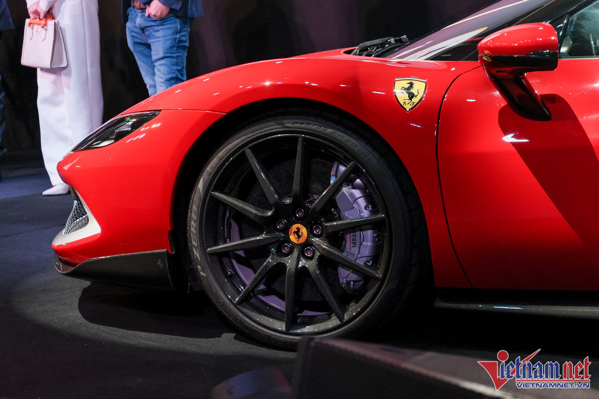Mẫu siêu xe Ferrari 296 GTB đang được trưng bày tại Hà Nội là phiên bản đã được hãng xe Ý bổ sung gói tùy chọn Assetto Fiorano, do đó nhiều chi tiết của xe sẽ sử dụng bằng vật liệu carbon như cản trước sau, ốp hông, la-zăng... giúp trọng lượng xe giảm được thêm 15 kg so với xe nguyên bản.