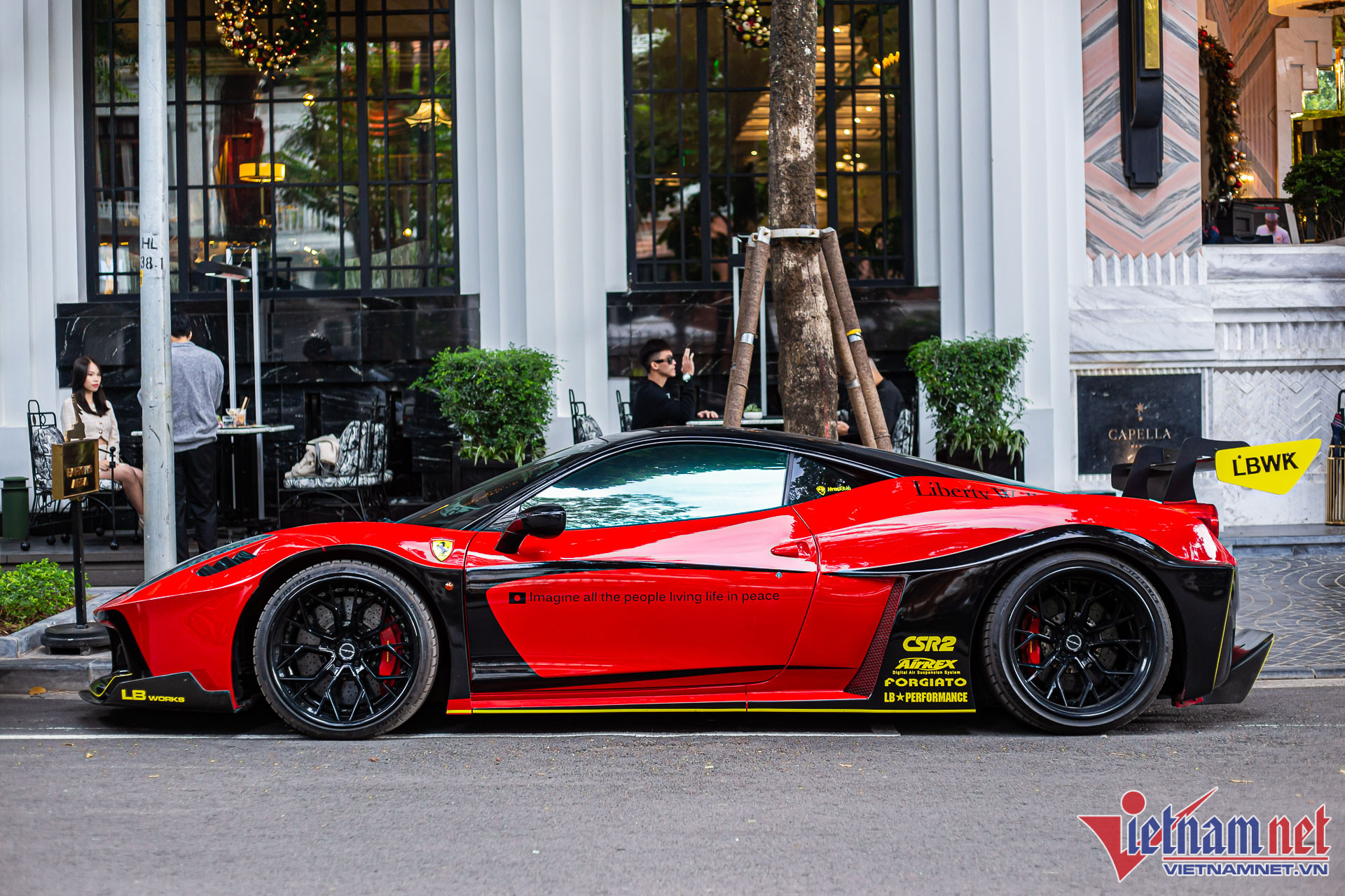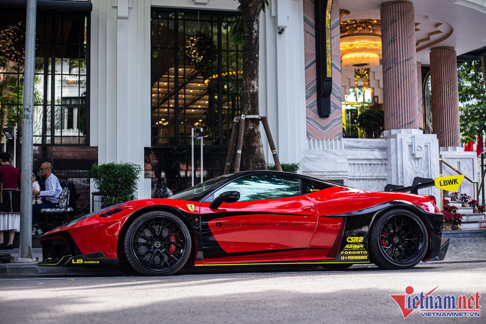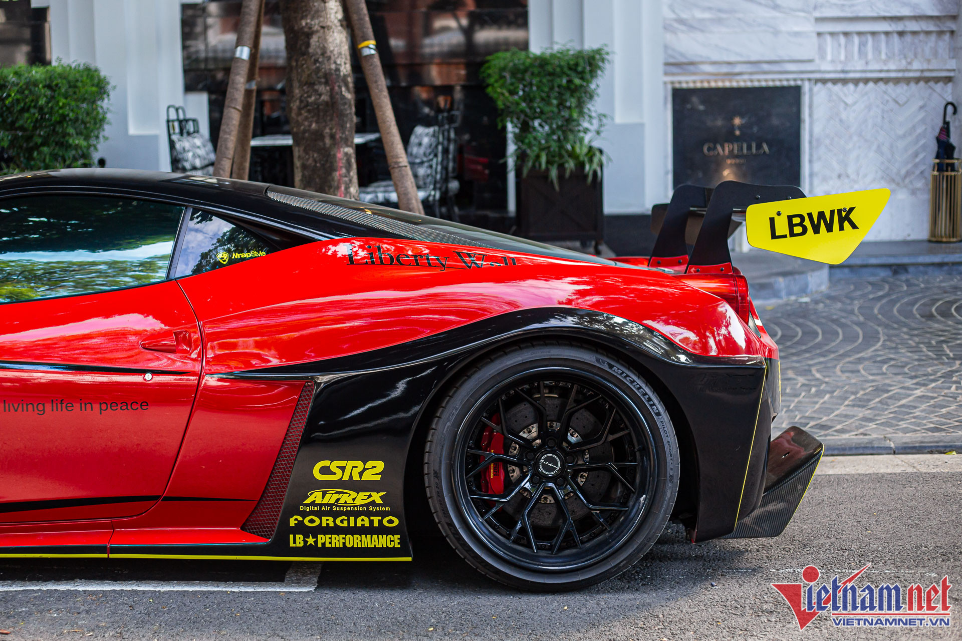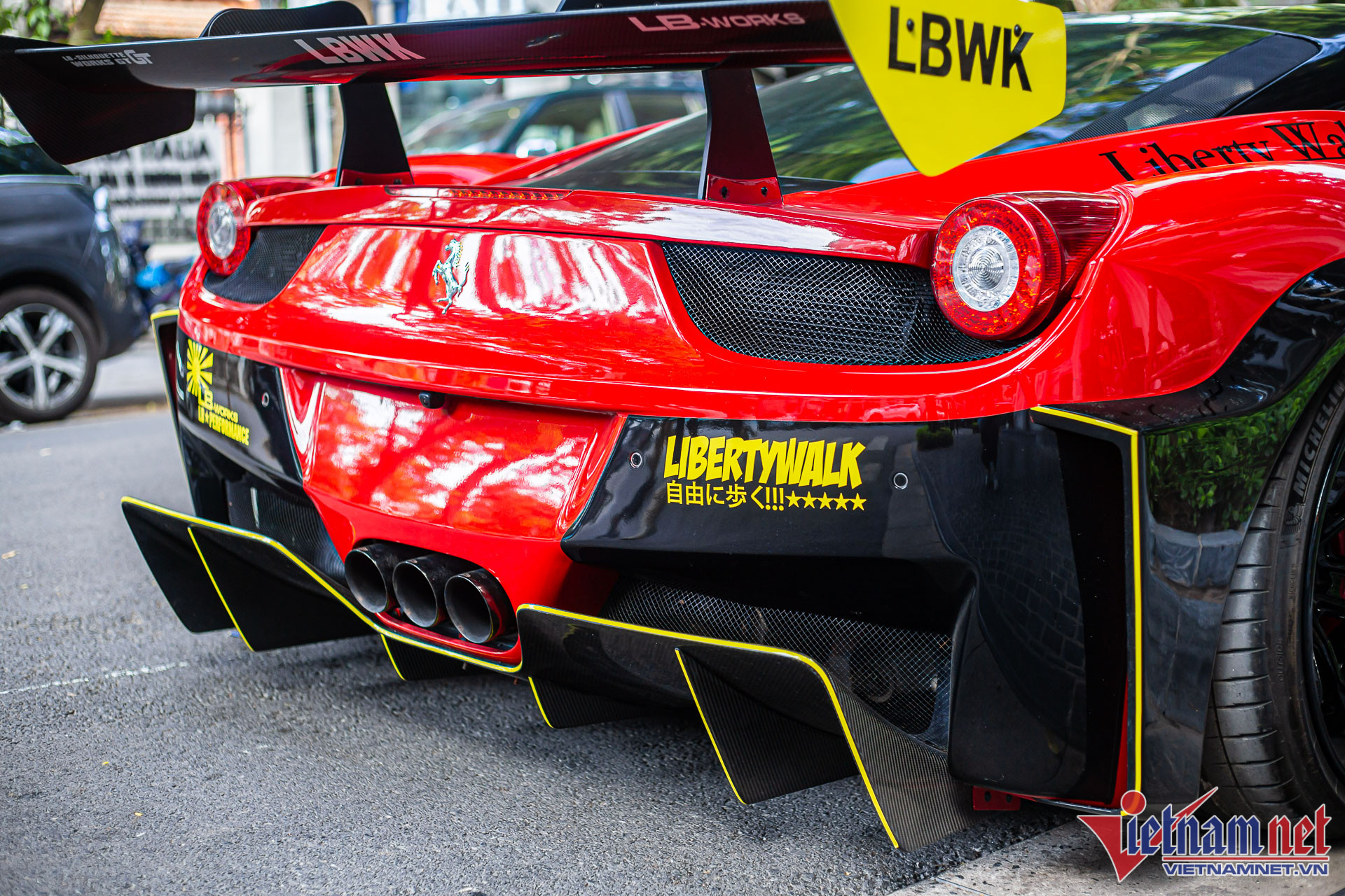 Khác với 5 chiếc siêu xe khác tại Việt Nam được đích thân các chuyên gia của Liberty Walk từ Nhật sang thi công trực tiếp, chiếc Ferrari 458 của đại gia Hà Nội do những kỹ sư người Việt thi công lắp ráp. Vì vậy, thân xe nguyên bản không bị ảnh hưởng nhiều.