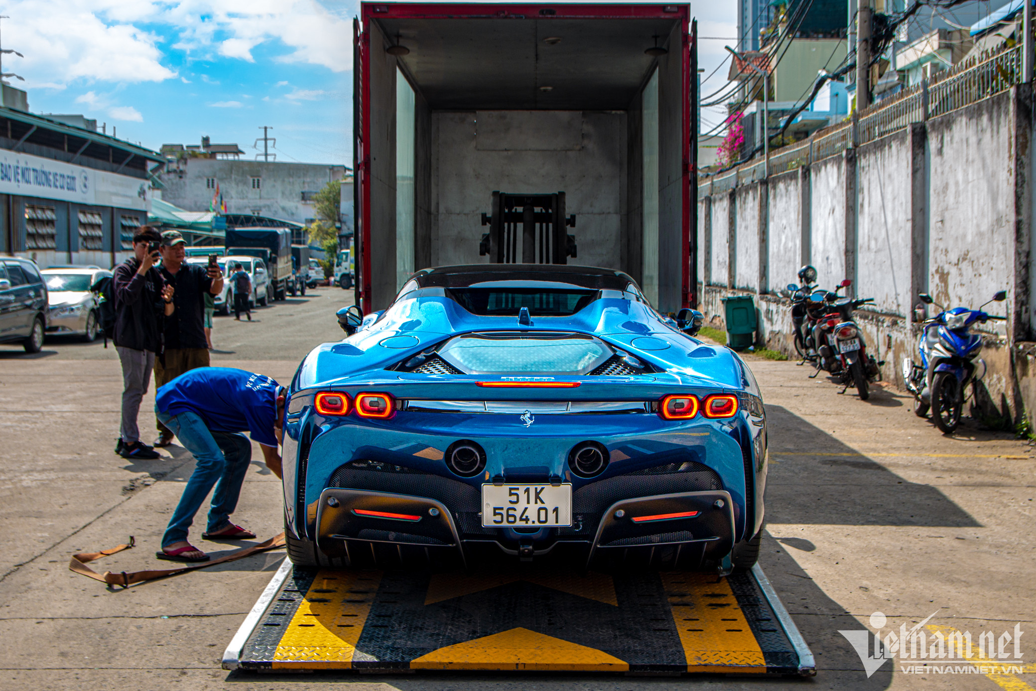 Sáng 10/12, siêu xe Ferrari SF90 Stradale của doanh nhân Nguyễn Quốc Cường (được biết đến với tên gọi Cường Đô la) đã được nhìn thấy đeo biển số trắng tại trung tâm đăng kiểm ở quận 7 (TP.HCM). Đây là chiếc SF90 Stradale thứ hai cập bến Việt Nam, chiếc đầu tiên có màu đỏ tươi Rosso Corsa đặc trưng của hãng siêu xe Italy.