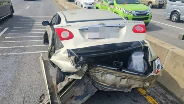 Siêu xe đã đột ngột tăng tốc và tông thẳng vào chiếc Toyota Altis đang di chuyển cùng chiều, trước khi văng vào hàng rào chắn. Vụ va chạm xảy ra quá bất ngờ khiến một chiếc xe bán tải nhãn hiệu Toyota Hilux di chuyển ở phía sau không kịp tránh và đâm thẳng vào rào chắn và bị lật.