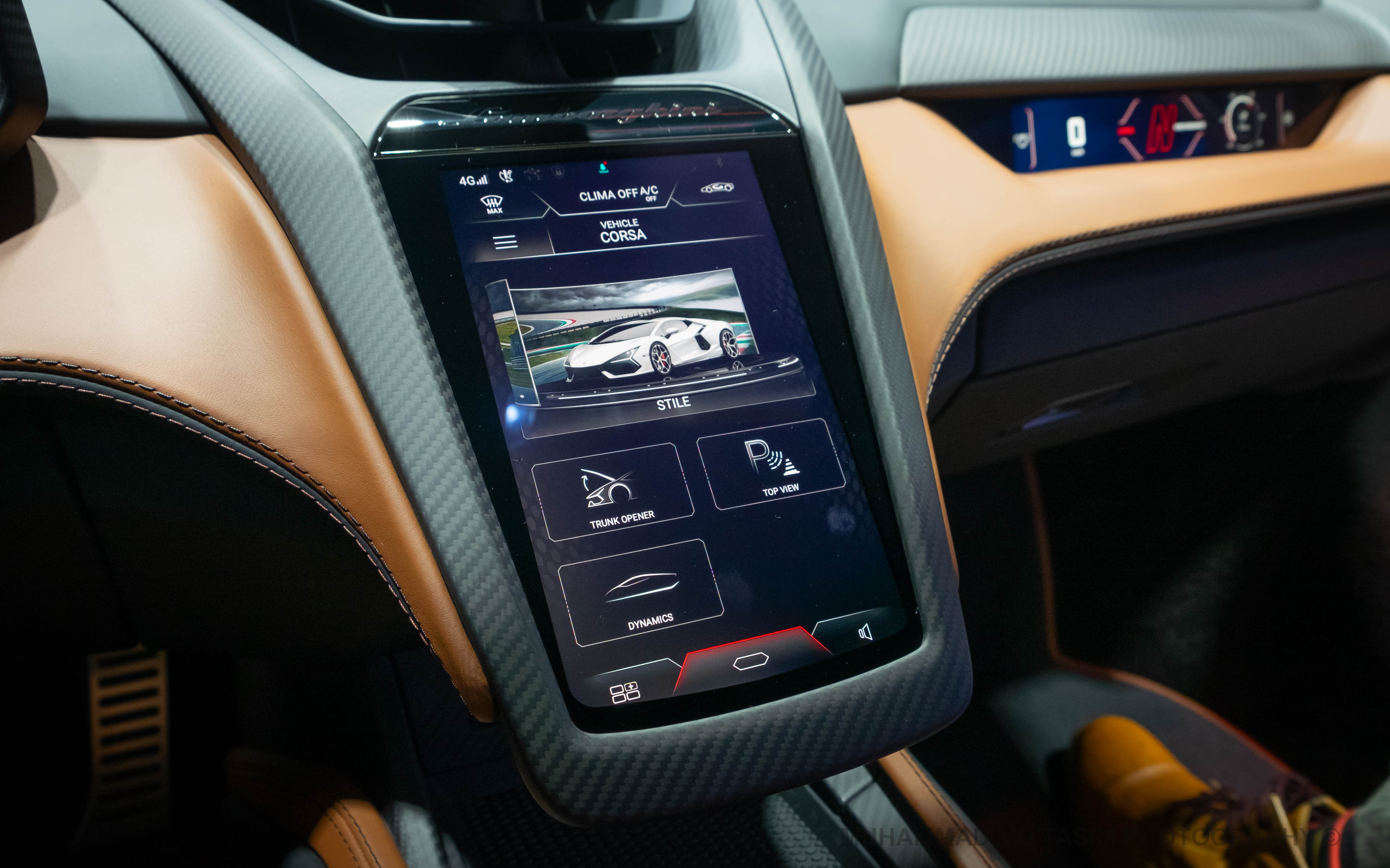 Tương tự ngoại thất, nội thất của Lamborghini Revuelto cũng được đổi mới hoàn toàn. Nổi bật nhất tại không gian này là bảng đồng hồ taplo kỹ thuật số 12.3 inch, màn hình trung tâm 8.4 inch và màn hình phụ trợ cho hành khách 9.1 inch.