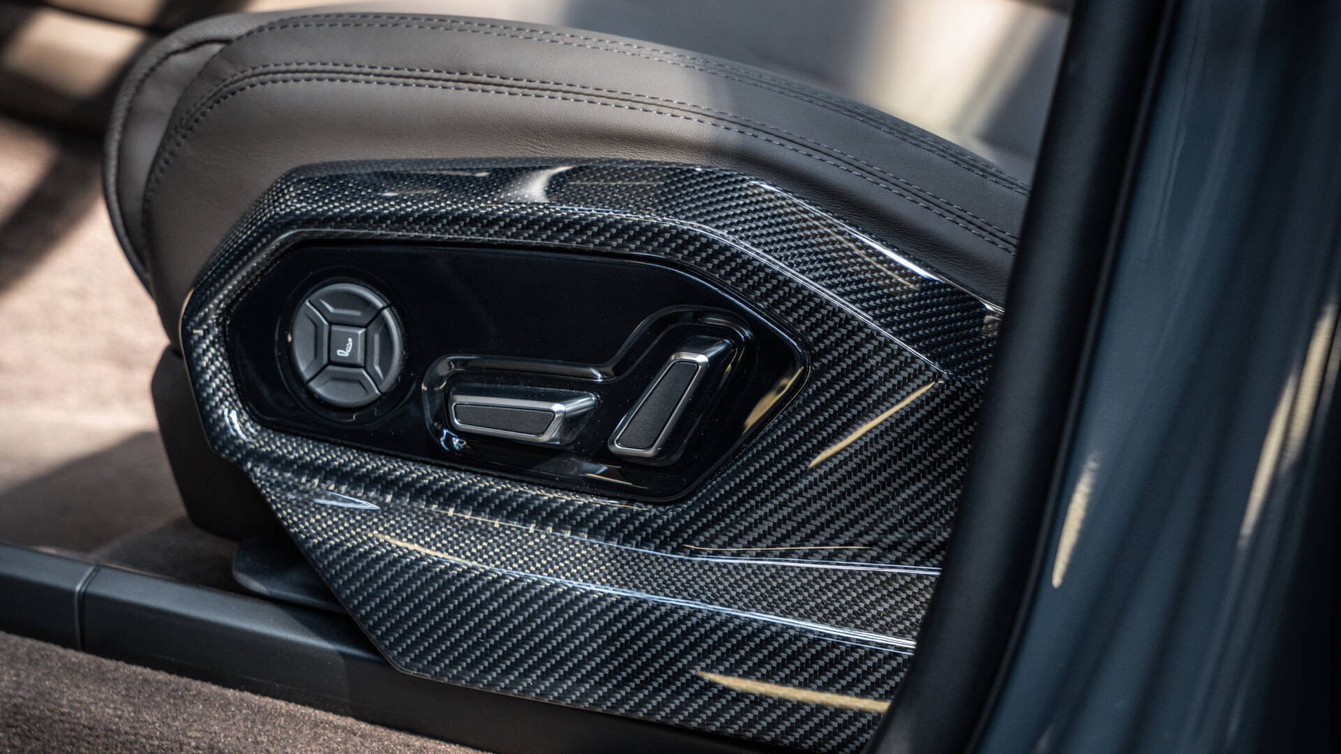 Nội thất của chiếc Urus ABT Scatenato được trang trí bằng các bề mặt sơn bóng hoặc tùy chọn sợi carbon dạng mờ tại các vị trí lẫy chuyển số, ốp nội thất, ốp tựa lưng ghế, cần số… Bệ bước của xe được làm mới với khả năng phát sáng và dòng chữ "Scatenato 1 of 99".