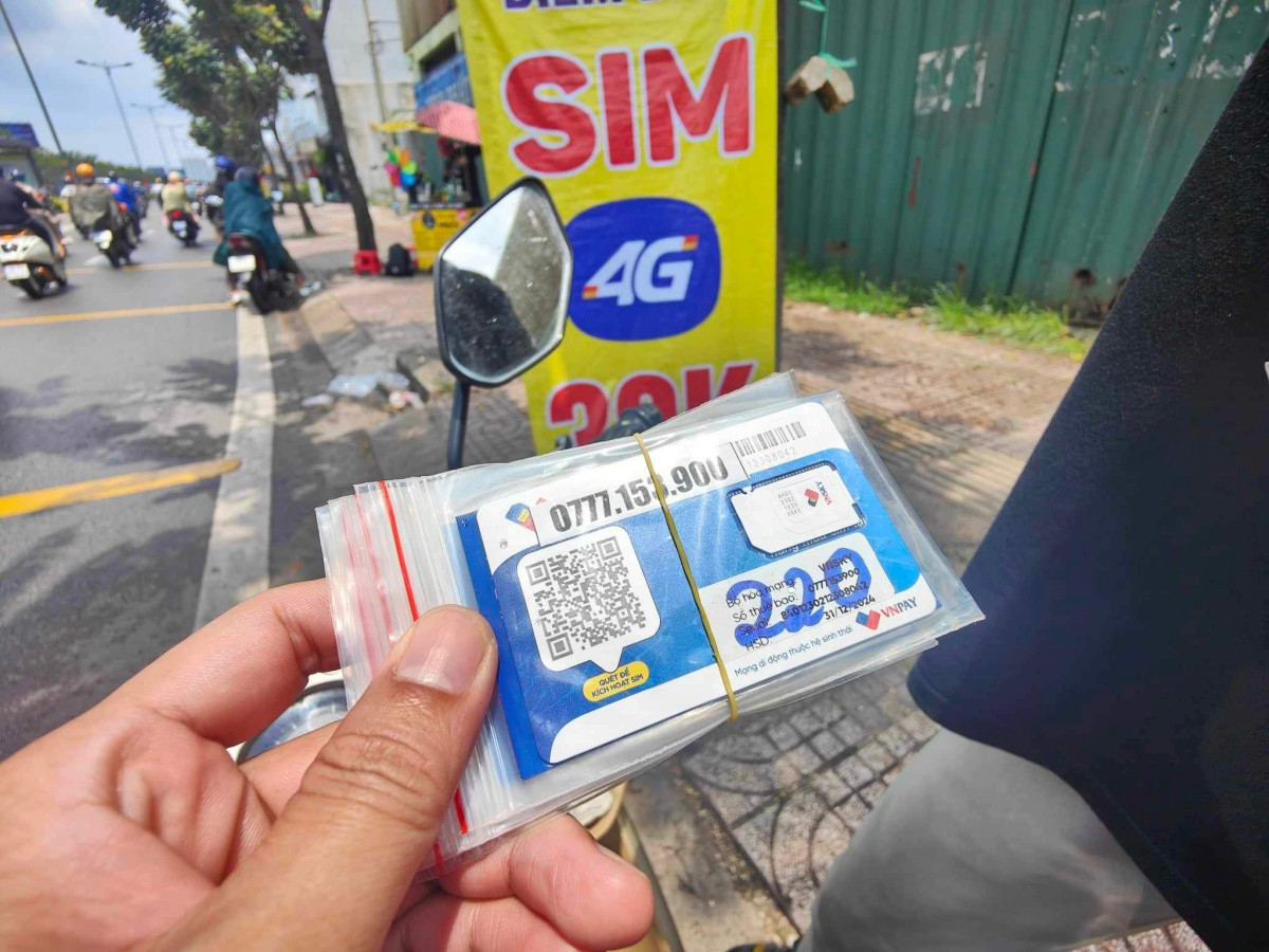 Tại một cửa hàng khác, ngoại trừ VinaPhone, ở đây các loại SIM đăng ký trước có sẵn gồm Viettel, VNSKY, Vietnamobile. SIM Viettel có giá 150.000 đồng và tài khoản 0 đồng, muốn gọi liên mạng phải nạp tiền. Trong khi đó, SIM VNSKY giá 250.000 đồng, gọi liên mạng miễn phí 50 phút, miễn phí 1.000 phút gọi nội mạng, Data 4GB/ngày và gia hạn 90.000 đồng/tháng. SIM Vietnamobile có 2 loại là 150.000 đồng, tài khoản 60.000 đồng và 200.000 đồng tài, khoản 200.000 đồng.