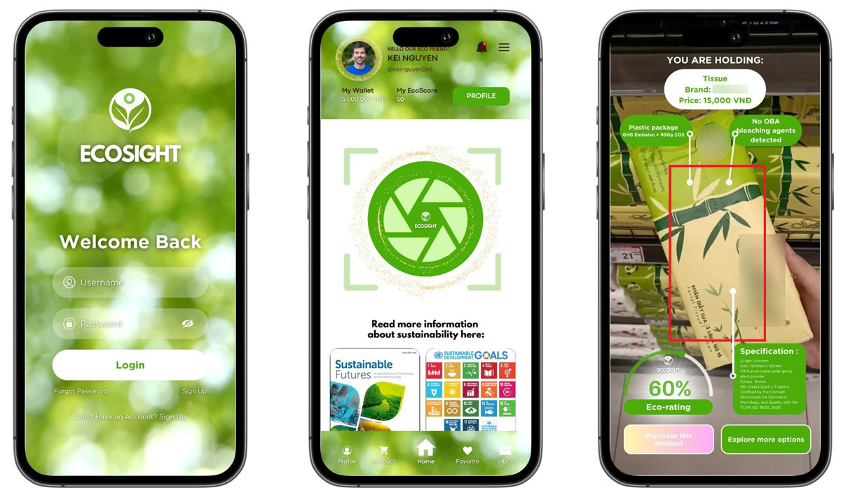 “Trong bối cảnh đó, EcoSight đặt ra sứ mệnh cách mạng hóa thói quen mua sắm của người Việt, giúp các sản phẩm sinh thái tiếp cận nhiều nhóm khách hàng hơn, góp phần xây dựng một xã hội xanh và khỏe mạnh", sinh viên Nguyễn Thị Quỳnh Trang cho hay.