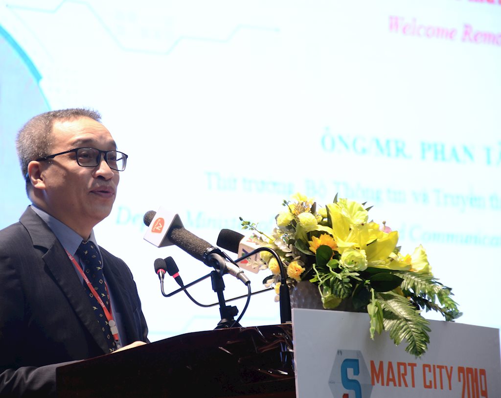 Thứ trưởng Bộ TT&TT Phan Tâm phát biểu tại Smart City 2019. |