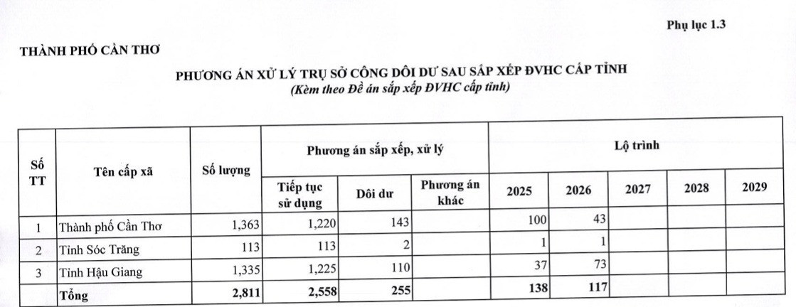 Đối với trụ sở công sau sắp xếp đơn vị hành chính dự kiến tiếp tục sử dụng 2.558/2.811 trụ sở; dôi dư 255 trụ sở.