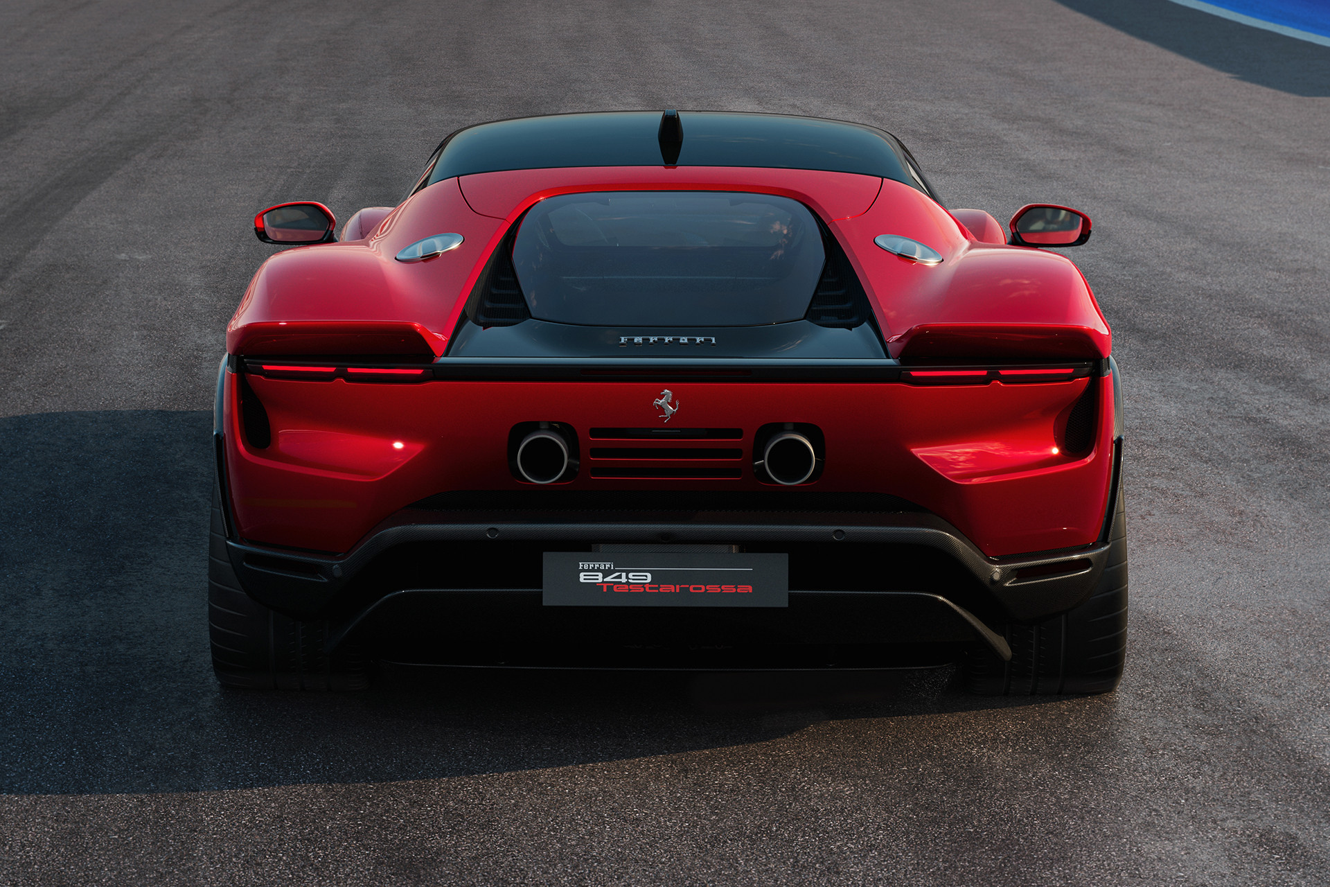 Về thiết kế, 849 Testarossa mang dáng berlinetta, động cơ đặt giữa phía sau, lấy cảm hứng từ các dòng Sports Prototype thập niên 1970. Ngôn ngữ tạo hình sắc sảo, mạnh mẽ nhưng vẫn giữ chất điêu khắc đặc trưng của Ferrari. Khí động học được tối ưu để tạo lực ép xuống 415 kg tại 250 km/h, tăng 25 kg so với SF90, đồng thời cải thiện hiệu quả làm mát thêm 15%.