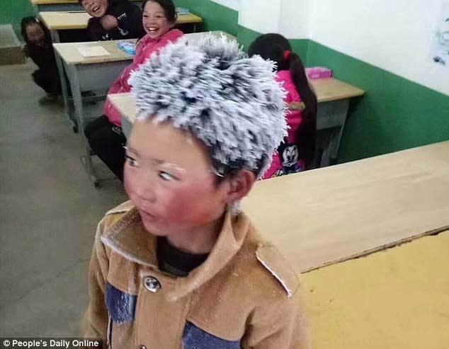 Bức ảnh cậu bé có mái tóc đóng băng đã giúp thu hút 100.000NDT tiền quyên góp cùng nhiều quần áo ấm từ những nhà hảo tâm.